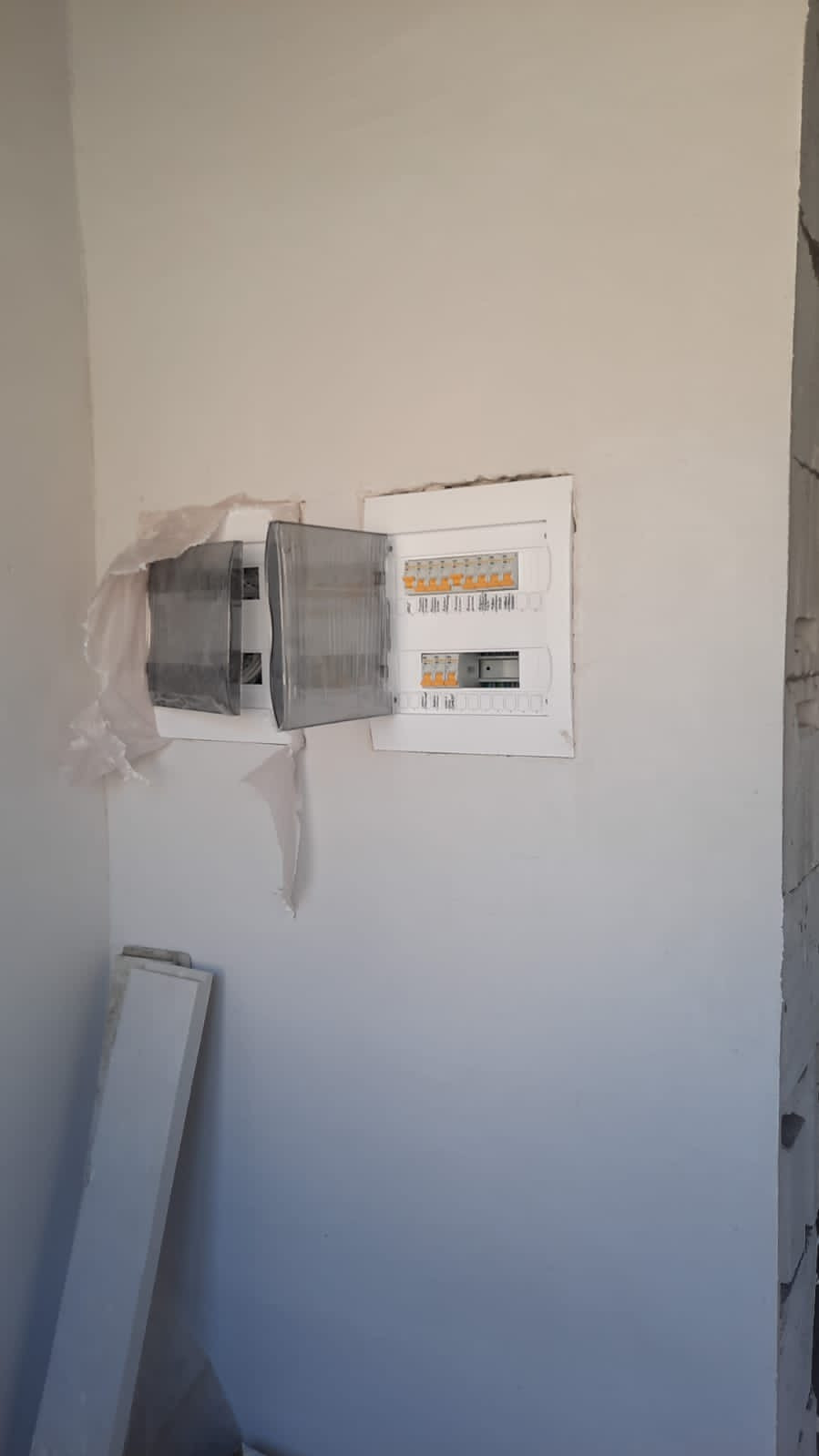 Выполнена полностью разводка электричества. Телевидение, охрана, домофон, интернет.