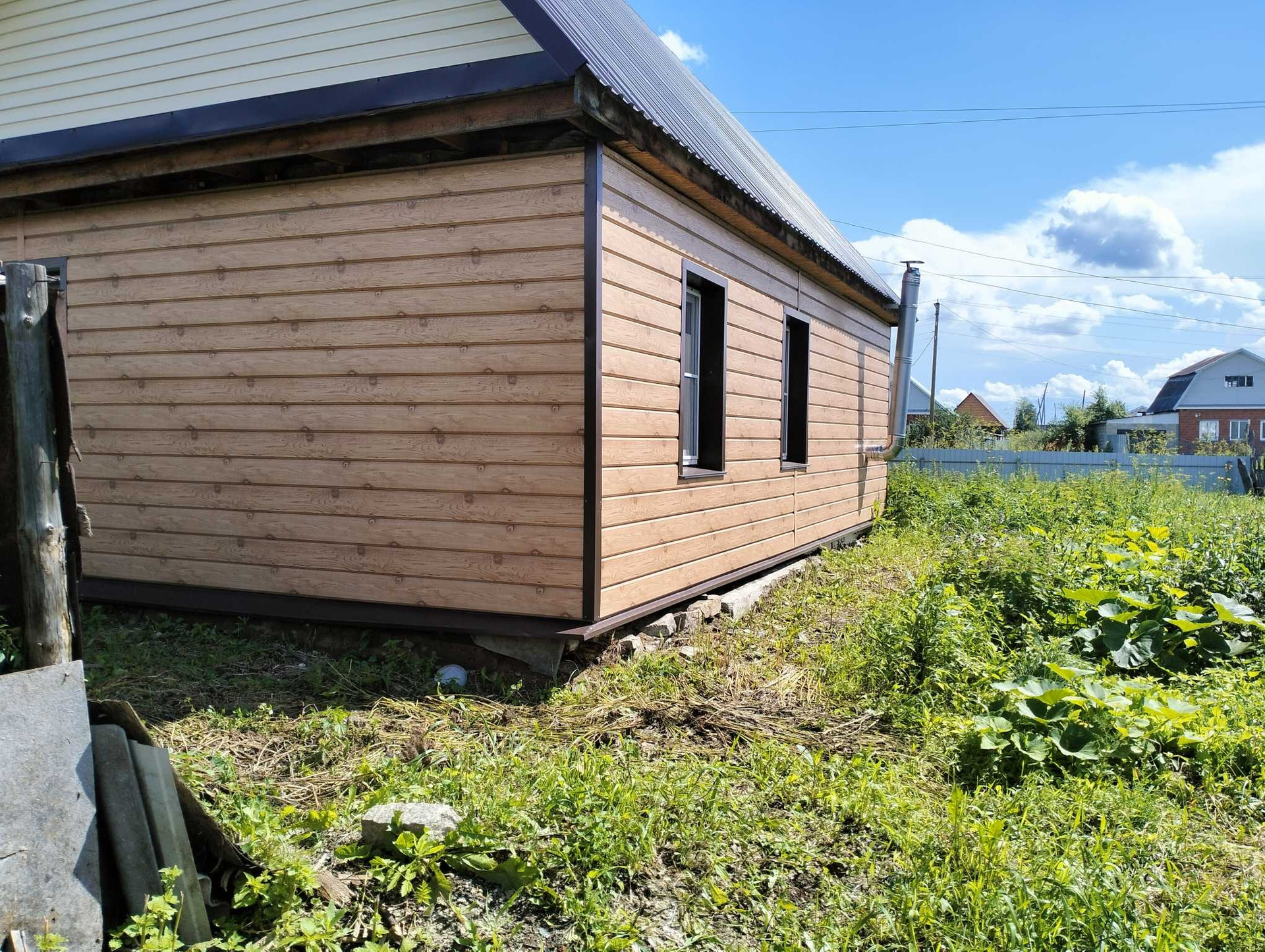 Во дворе много места для отдыха, на участке есть баня, большой металлический бак для полива, множество плодово-ягодных насаждений: вишня, крыжовник, смородина, груши, яблони.