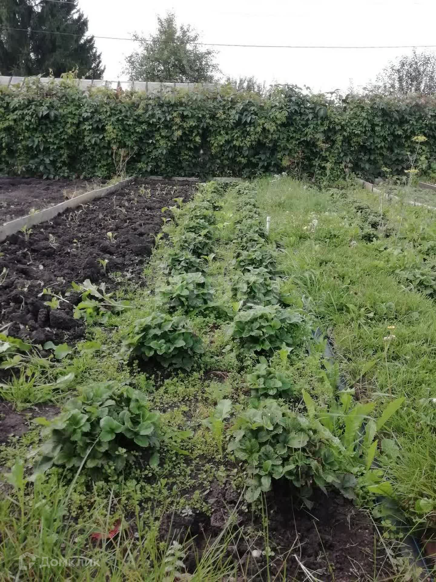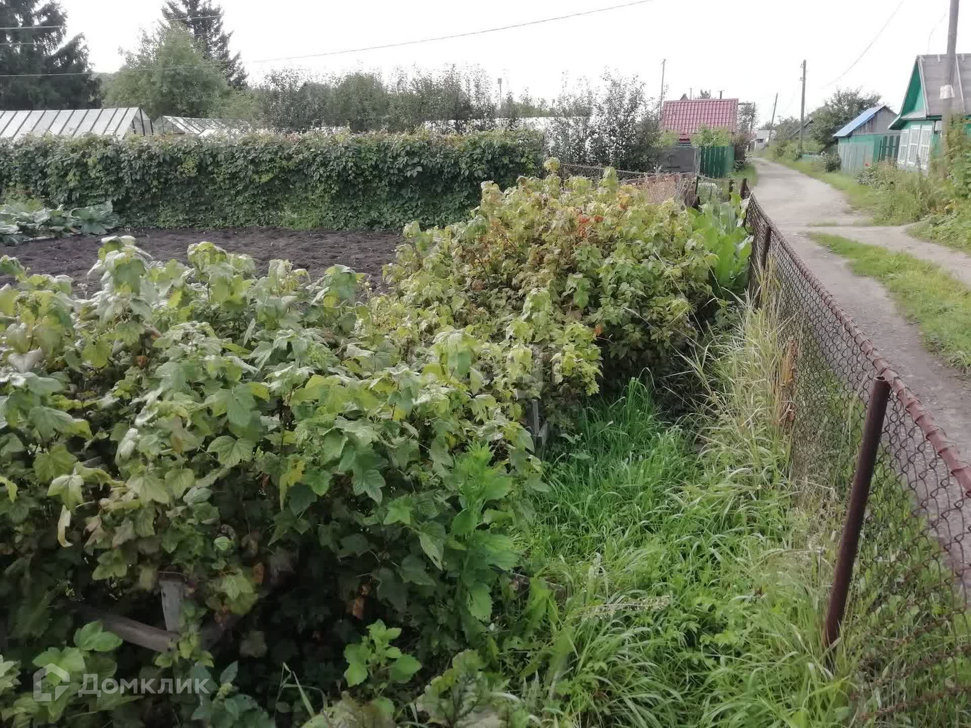 На участке поставлена просторная теплица (разделена на два отсека, вход с двух сторон), имеется металлический бак для воды.