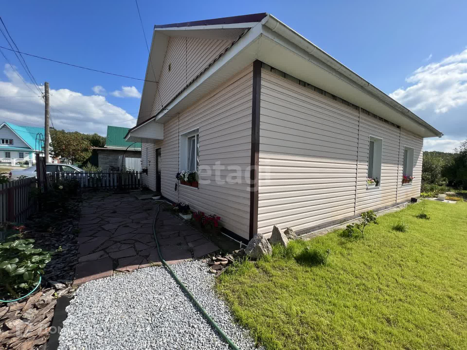 Дом сделан из заливных панелей, утеплен пенополистиролом, отделан качественным сайдингом. Фундамент: сваи и заливная плита. Дом построен в 2013 году. На крыше металлочерепица. Хорошая, удобная планировка: 3 спальные комнаты, отдельно зал, большая кухня, совмещенный сан.узел, вместительная прихожая, бойлерная-кладовка. Газовое отопление, двухконтурный котел, вода из скважины, с очистной системой, выгребная яма в четыре кольца со второй ямой для перелива. В доме сделан современный - косметический ремонт. Участок ровный, на участке находится беседка, место для хранения садовых инструментов, свой небольшой прудик с рыбками. Большая зона отдыха.