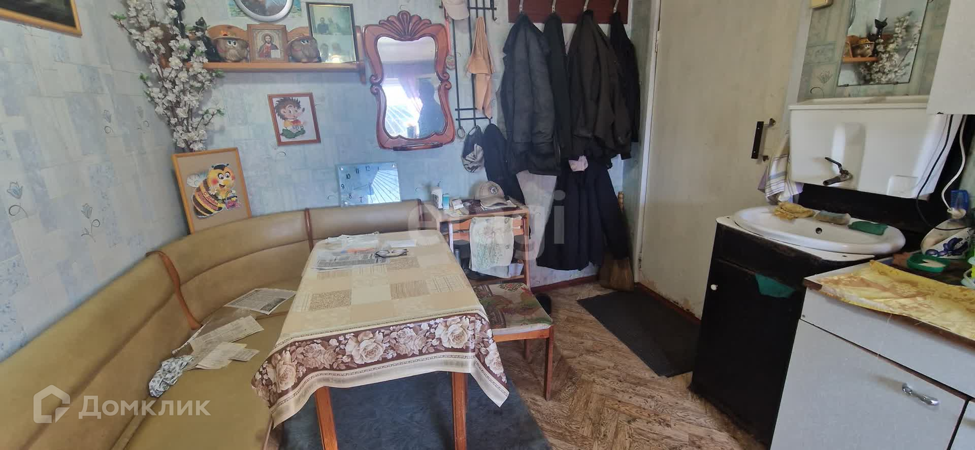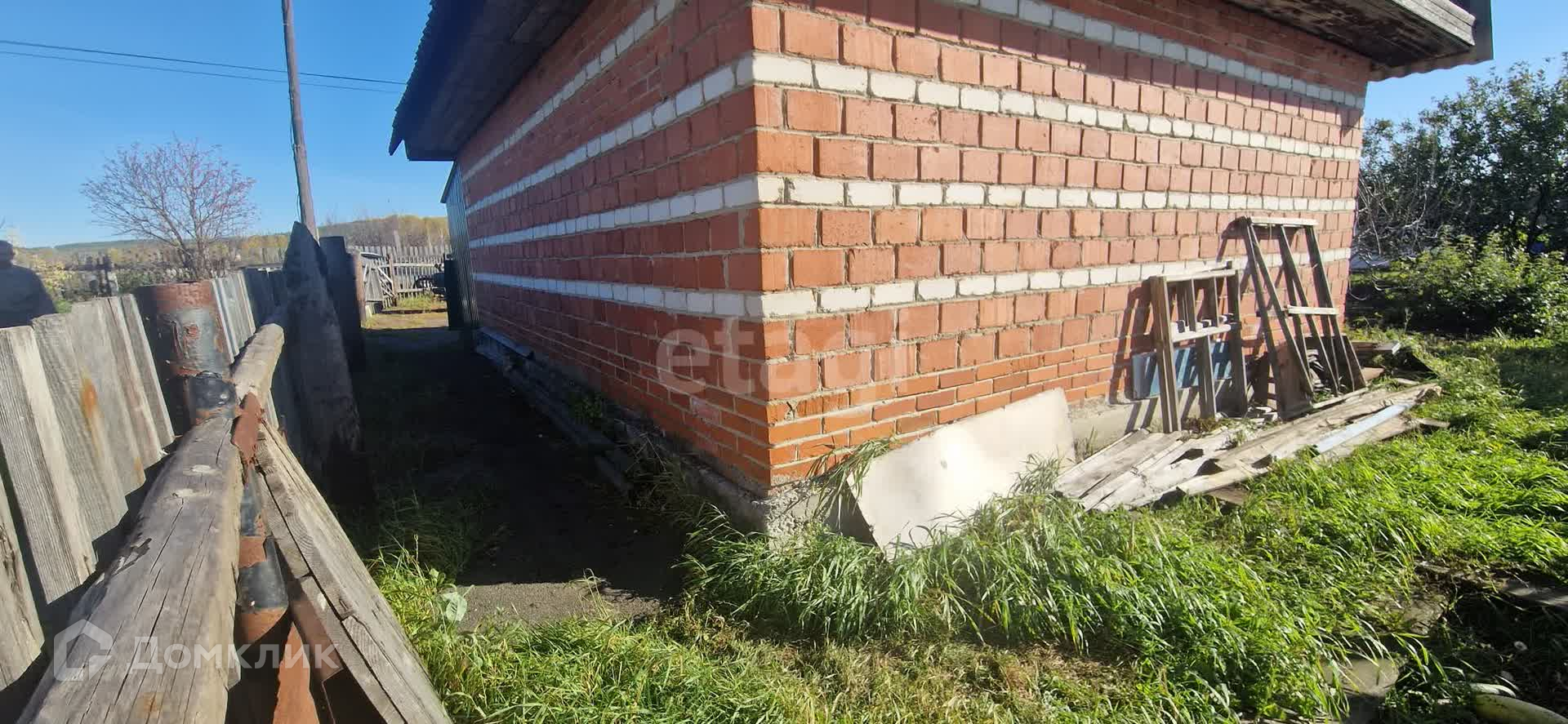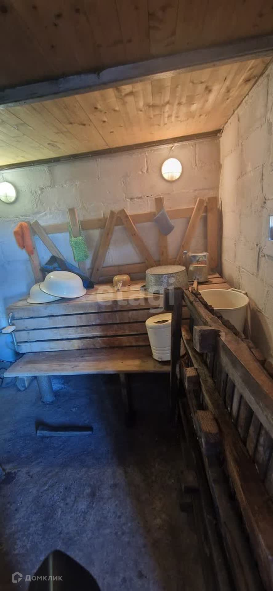 На участке есть кирпичный дом с печным отоплением, состоящий из веранды, кухни и просторной комнаты. Дом подходит для зимнего проживания.