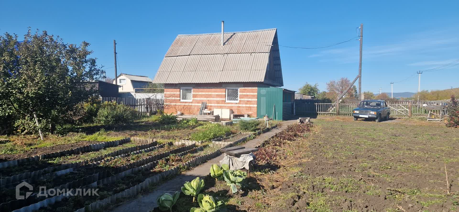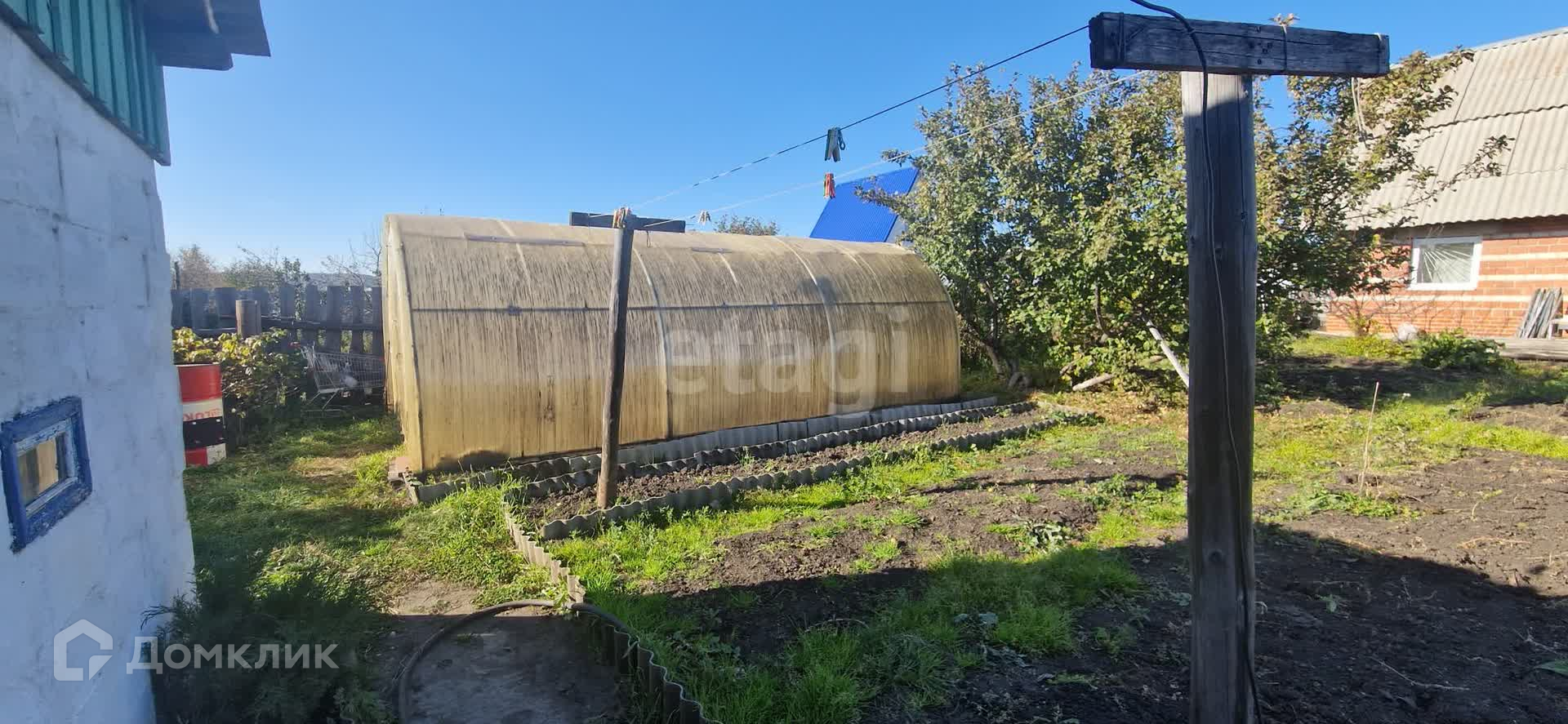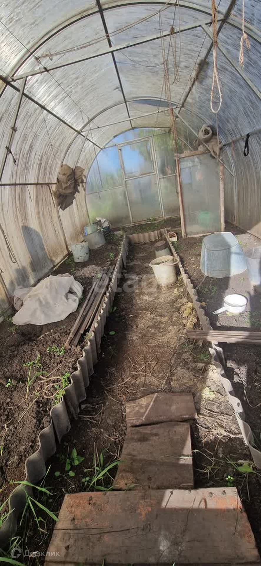 Земля разработанная, много различных плодово-ягодных насаждений. Имеется просторная теплица.