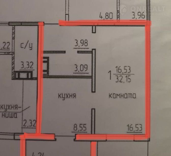Балкон, лоджия 1 лоджия
