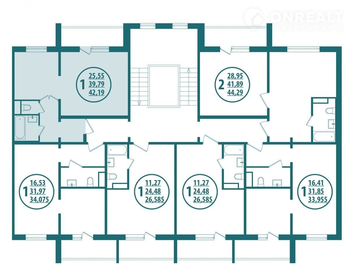 Общая площадь 42.2 м2