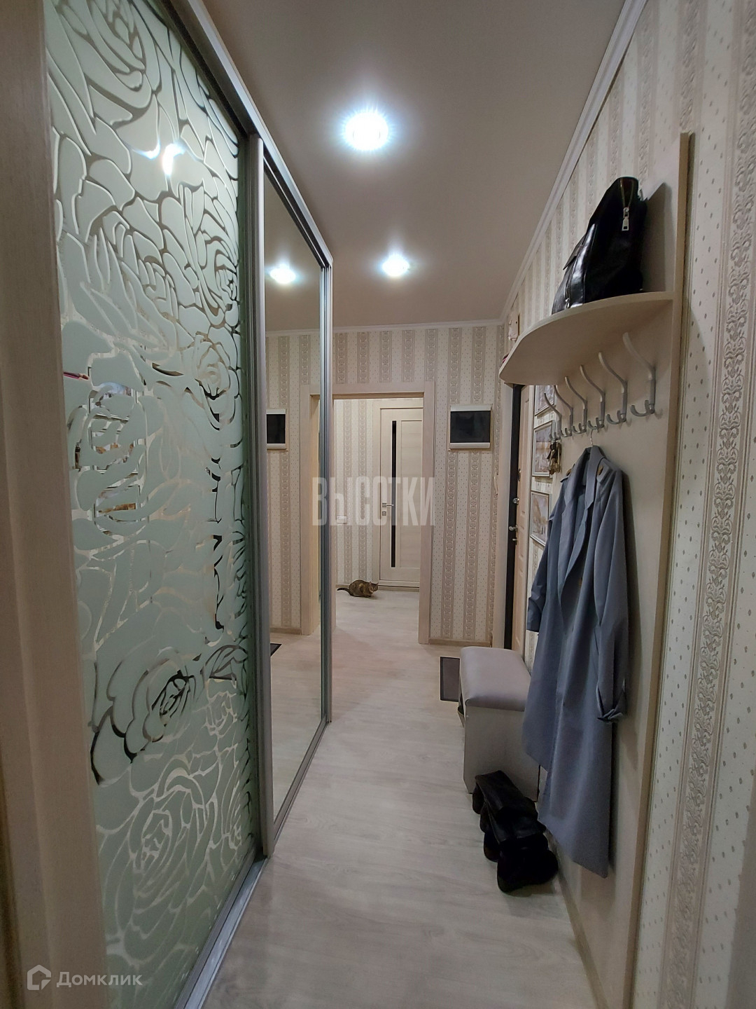 В квартире выполнен качественный ремонт с заменой электрической проводки, сантехники и комплектующих. На полу по всей квартире качественный линолеум, межкомнатные двери в едином стиле, флизелиновые обои в светлых тонах, в кухне, в качестве декора, использована фреска, потолки натяжные, пластиковые стеклопакеты, лоджия застеклена евро-купе. При продаже остается практически вся мебель (шкафы купе, кухонный гарнитур, прихожая), мебель в спальне и техника. Вся обстановка в отличном состоянии.