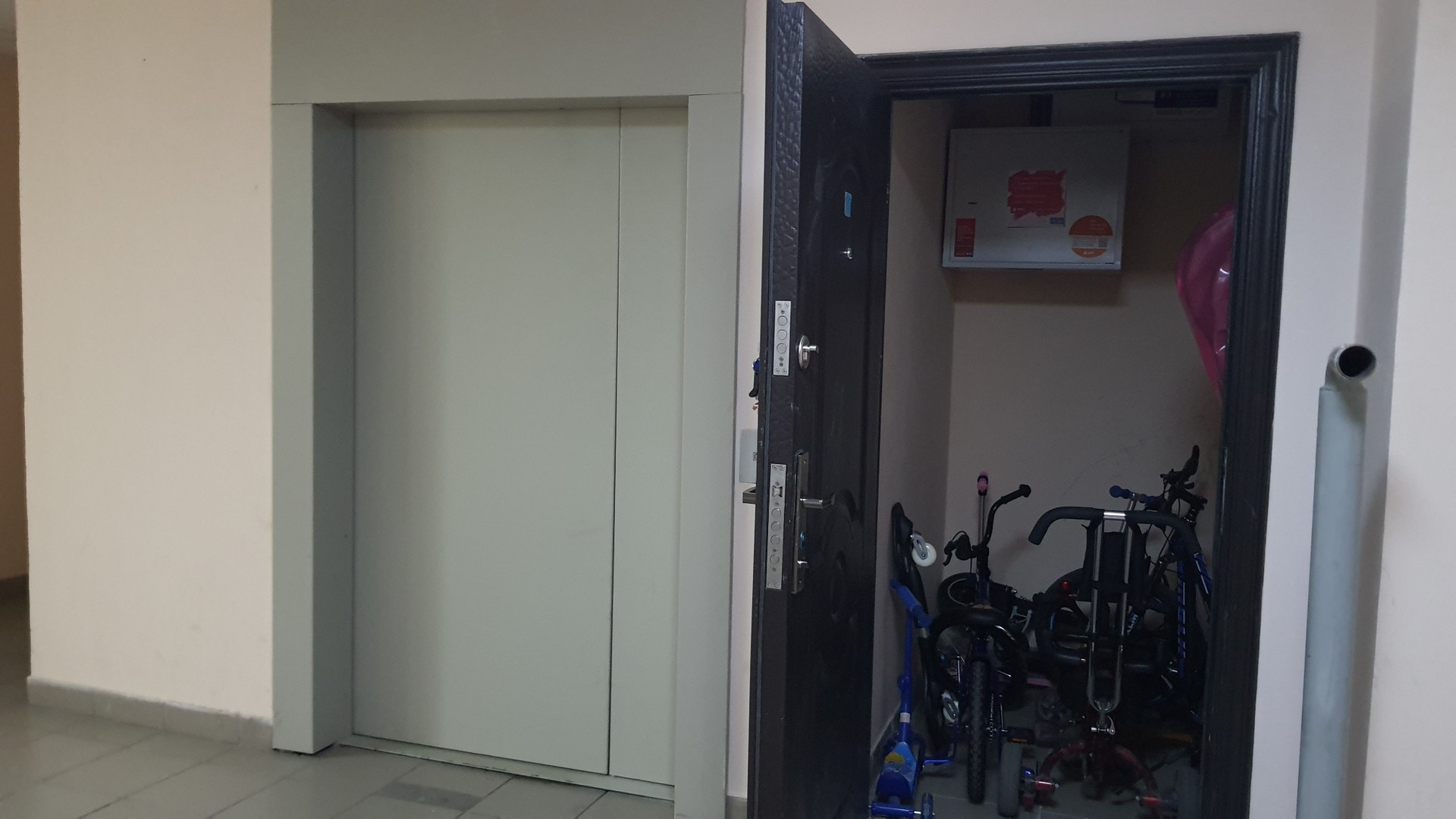 На площадке видеонаблюдение, просматривает выход на лестничную клетку, лифт и вход в квартиру.