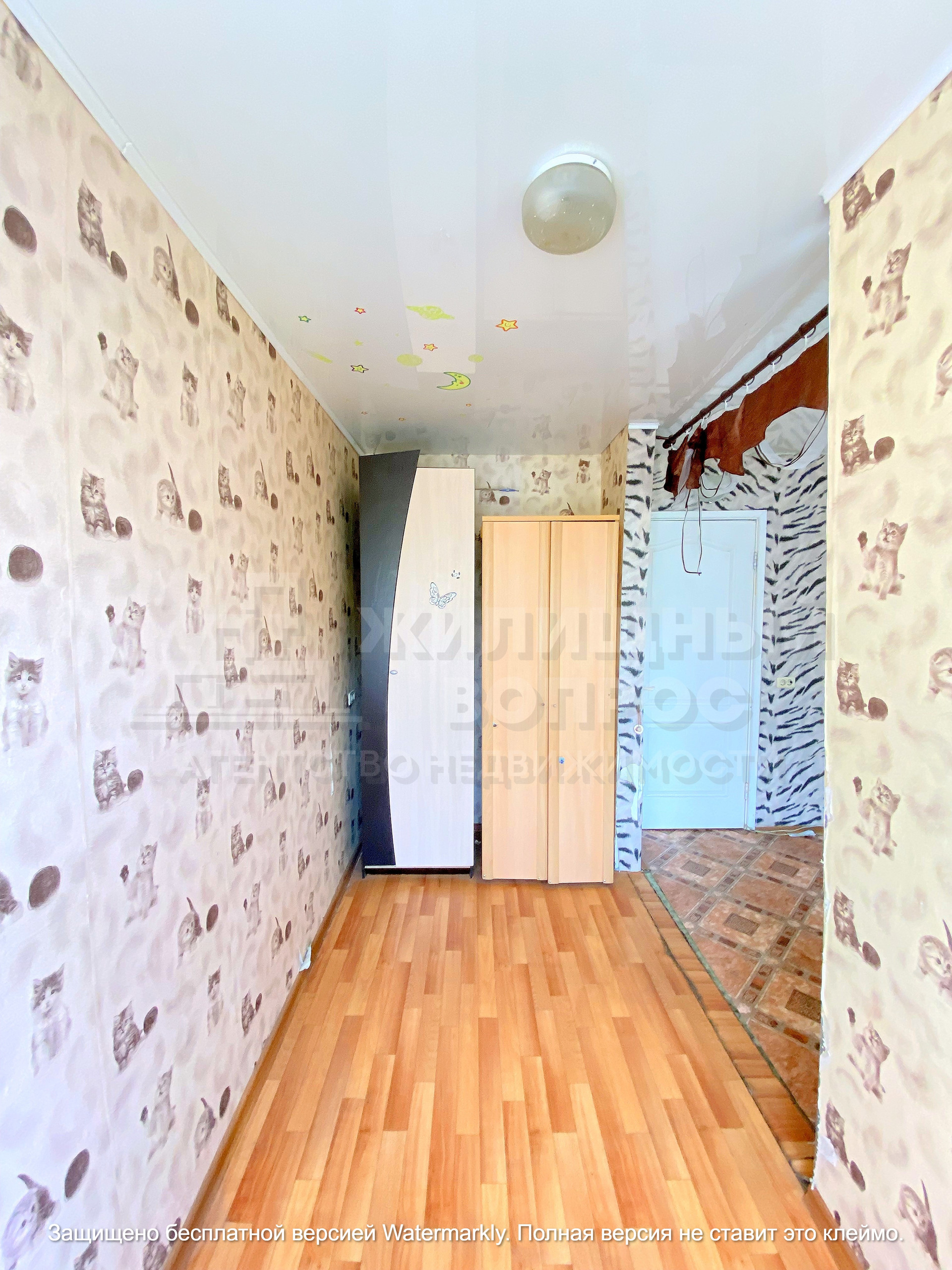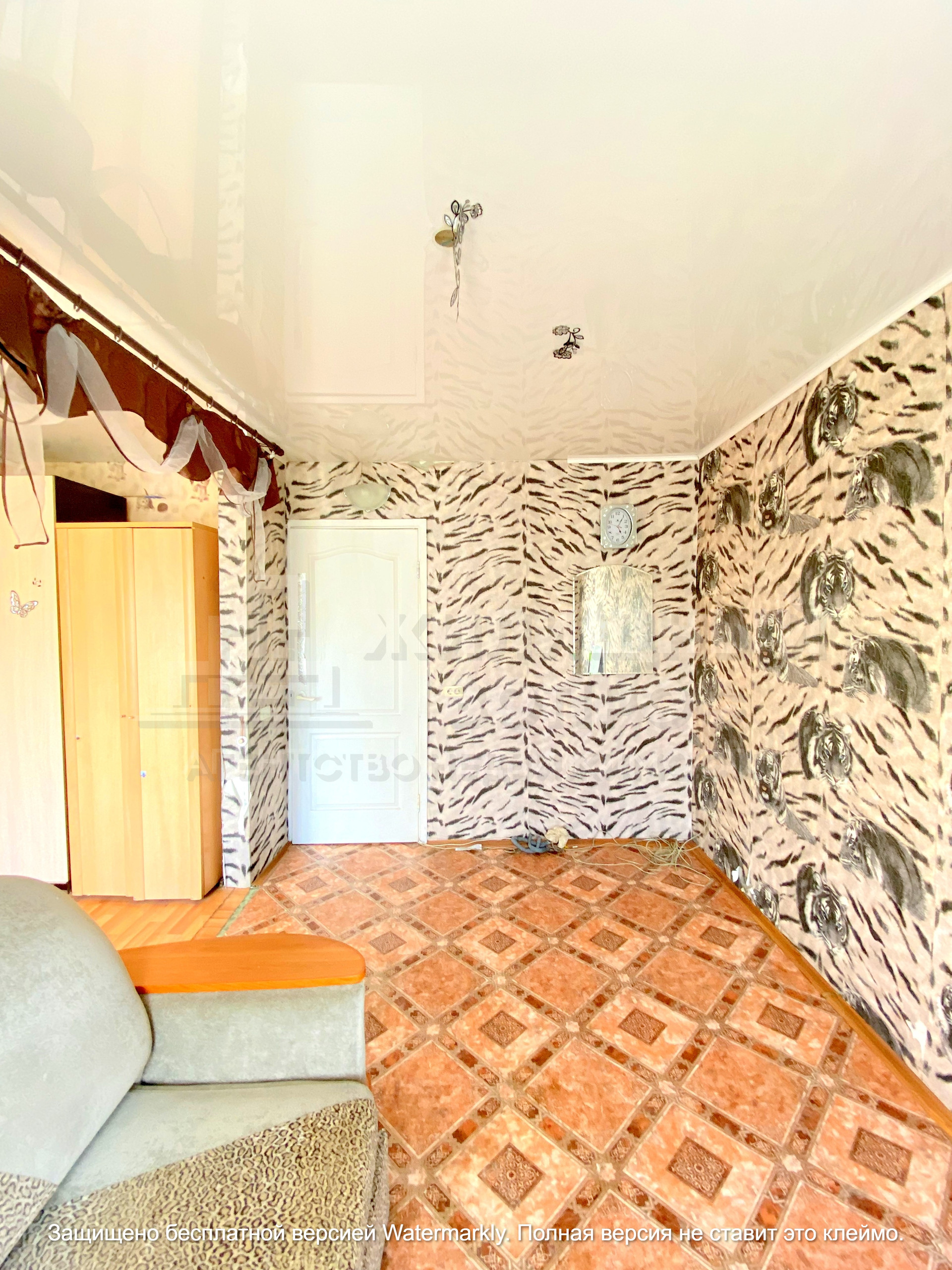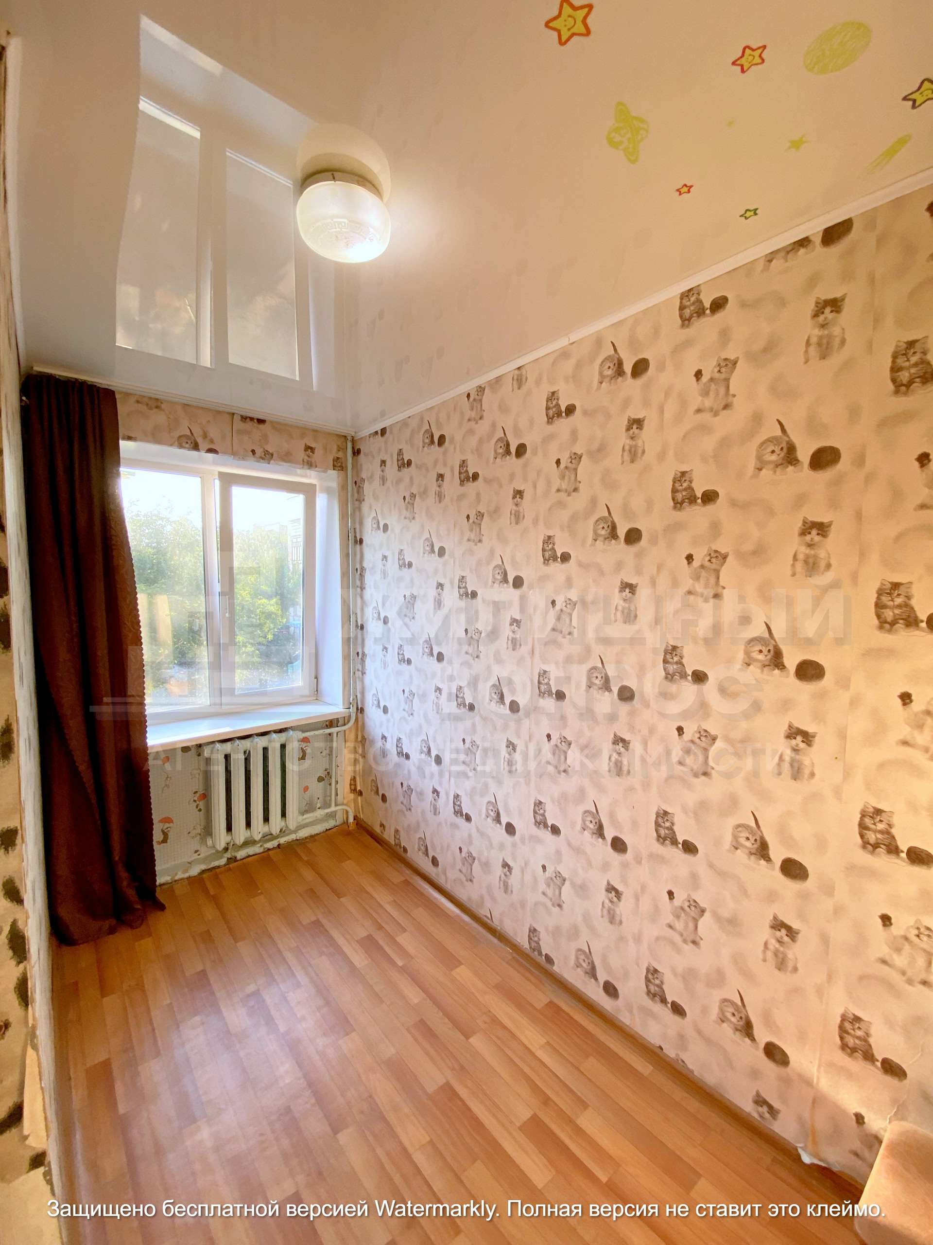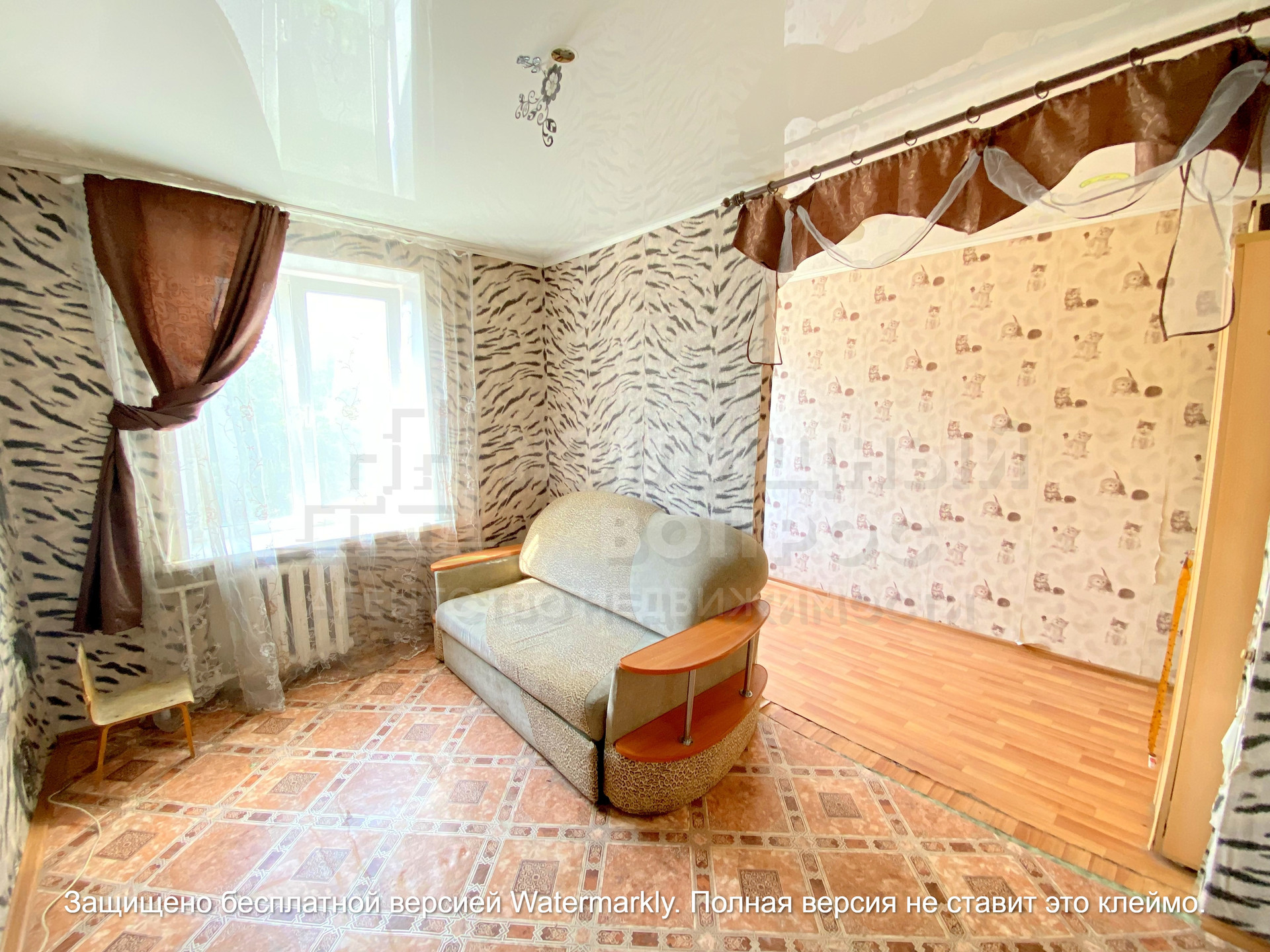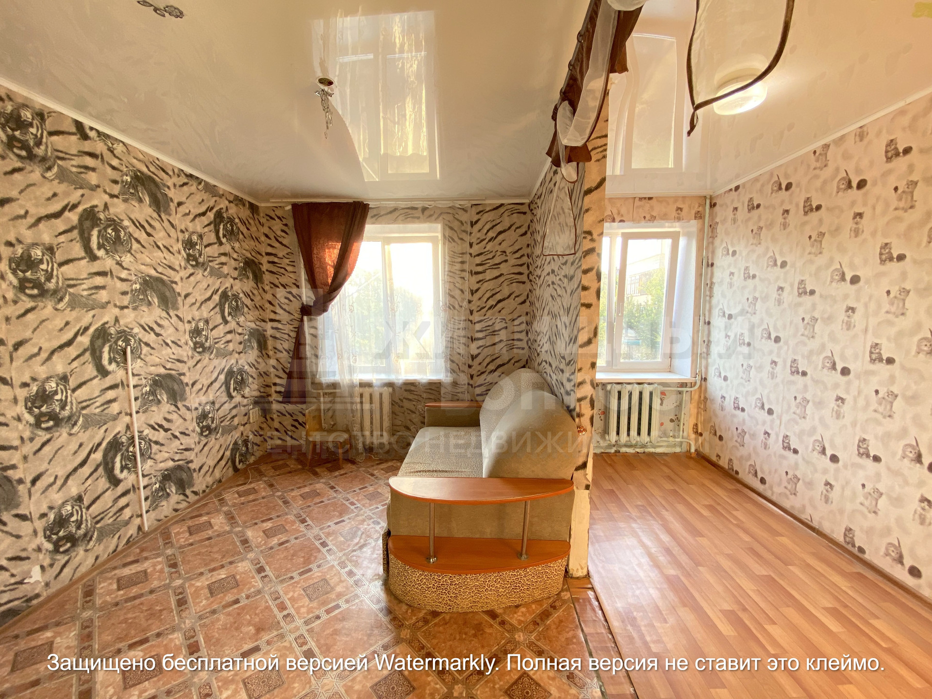 Пол деревянный, поверх постелен линолеум. По всей квартире установлены натяжные потолки. На стенах обои. С/узел совмещенный, на полу и на стене плитка, установлены счетчики. Евро окна в двух комнатах. Чугунные батареи отлично греют зимой ! Мебель остается при продаже.