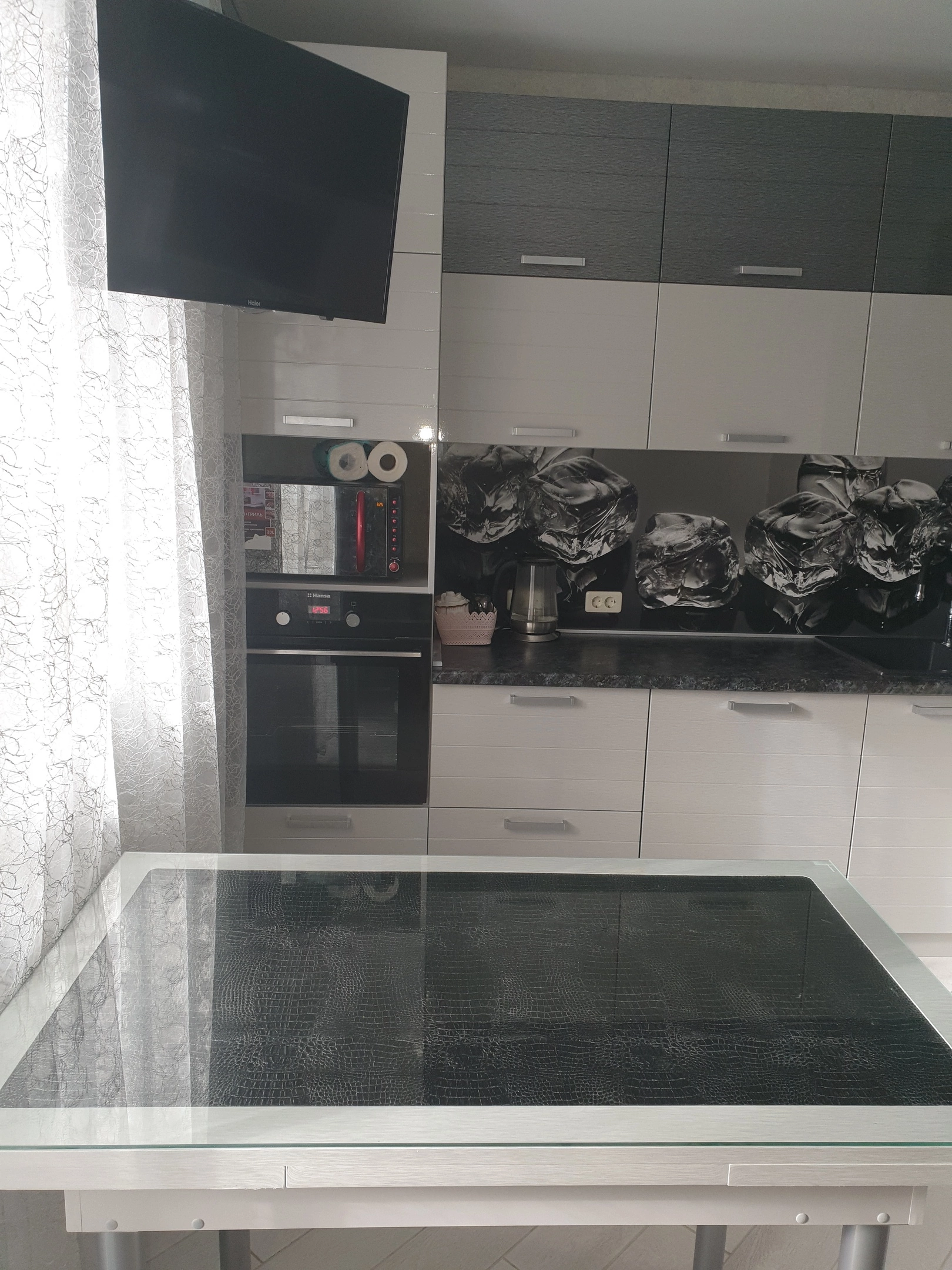 3-х комнатная квартира 57 кв, кухня-гостиная, детская, спальня. В ванной комнате стоит душевая и ванная. Во всех комнатах и прихожей встроеные шкафы, в коридоре большая обувница . В детской комнате три спальных места ( одно можно использовать как ящик под игрушки ), письменная зона. Балкон теплый, диван раскладывается, большой вместительный шкаф.