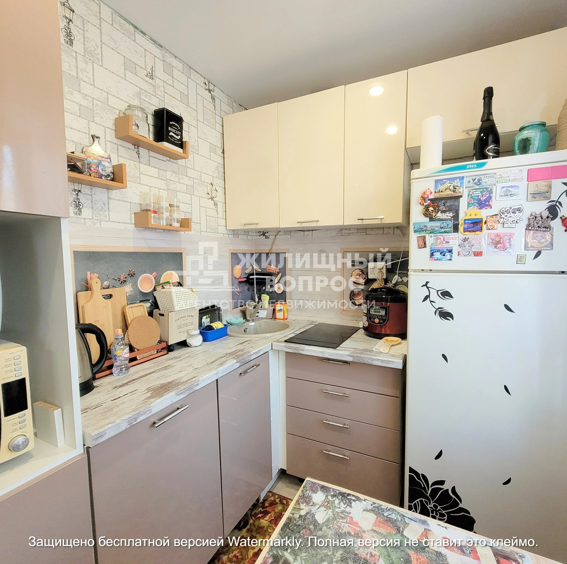 В квартире остаётся кухонный гарнитур, плита, большой шкаф в коридоре.