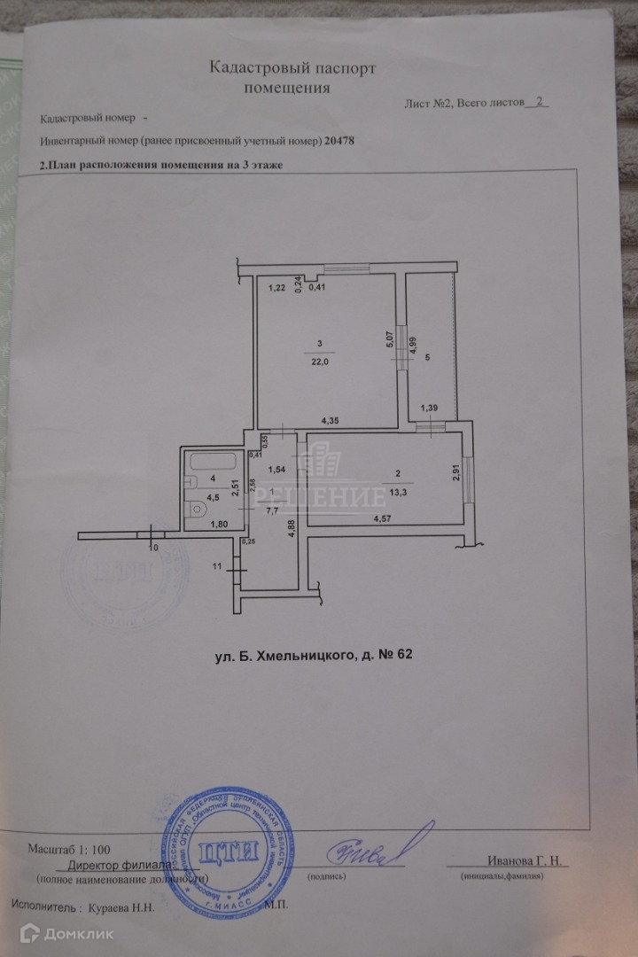 Продается 1 комн. крупногабаритная квартира по ул.Богдана Хмельницкого 62.