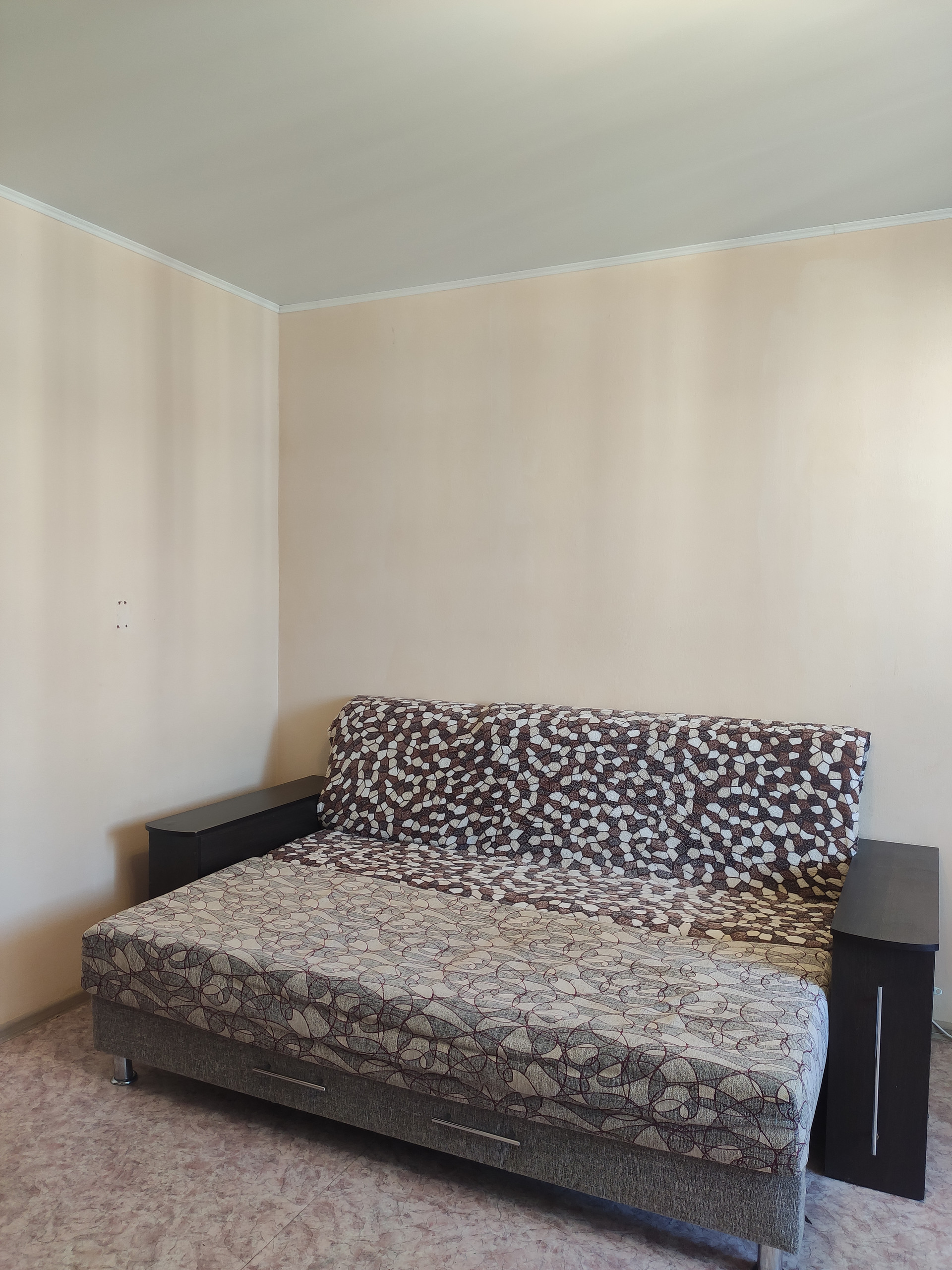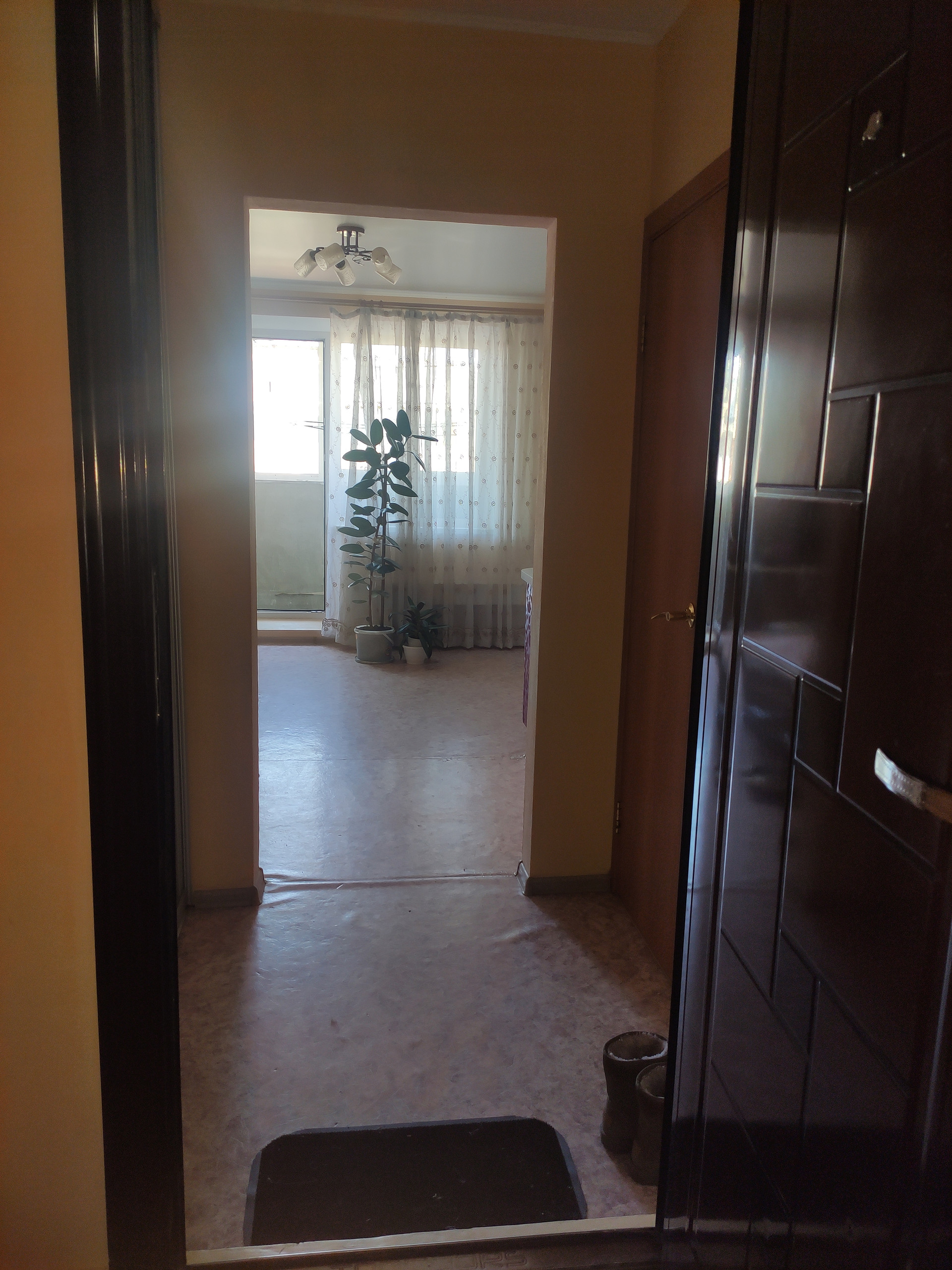 Выполнен косметический ремонт: натяжные потолки, линолеум, обои под покраску, лоджия застеклена евро-купе.