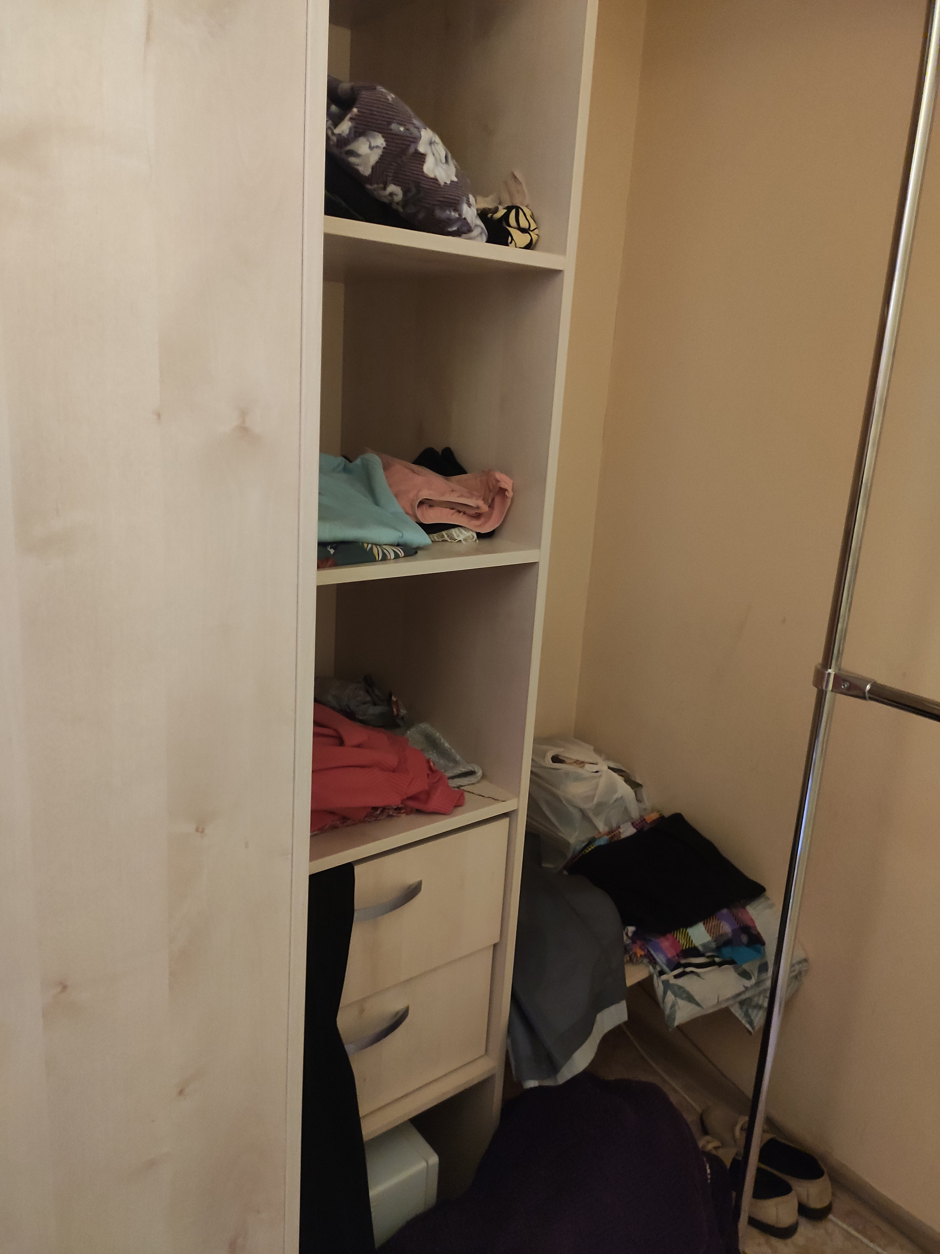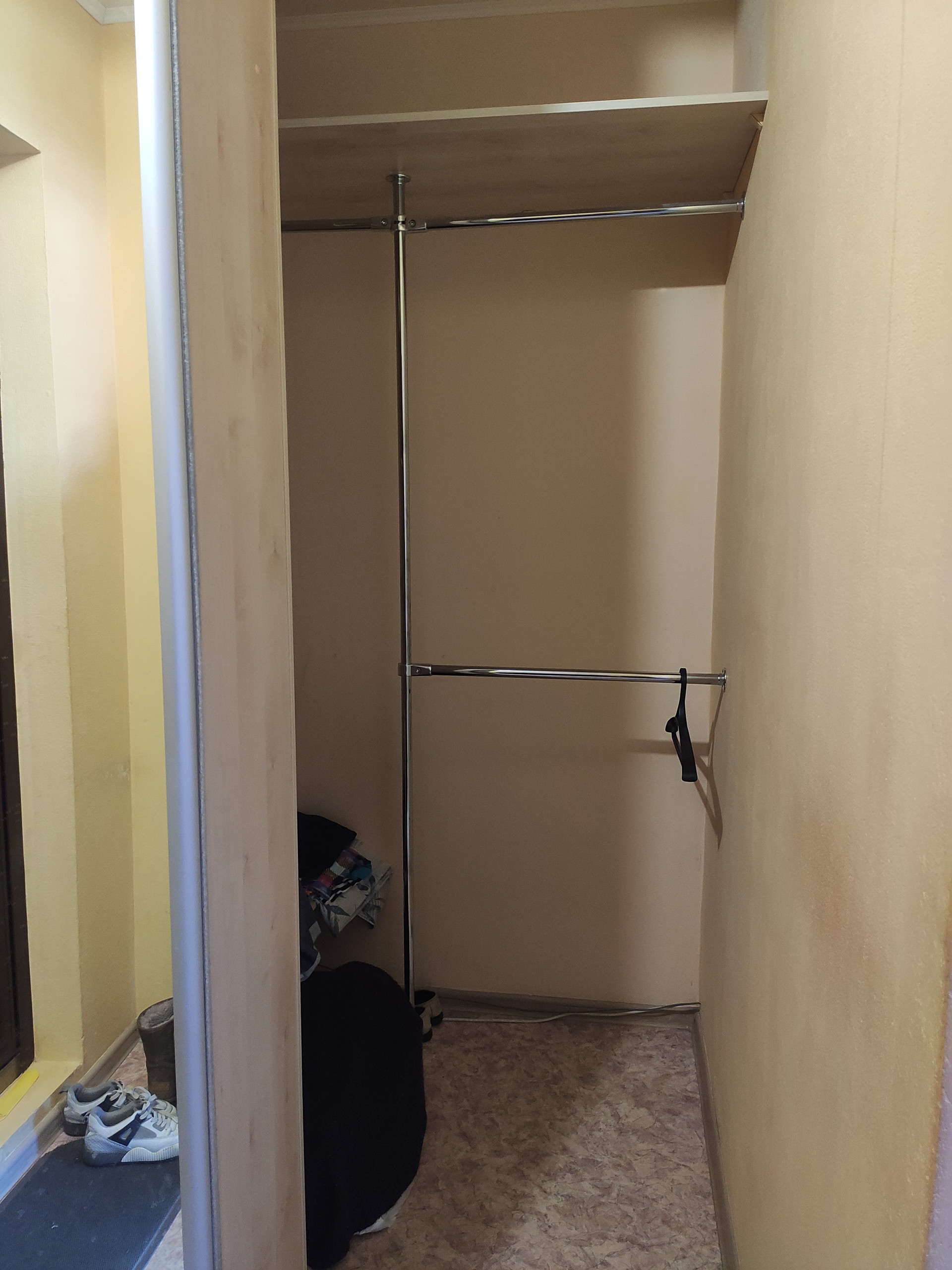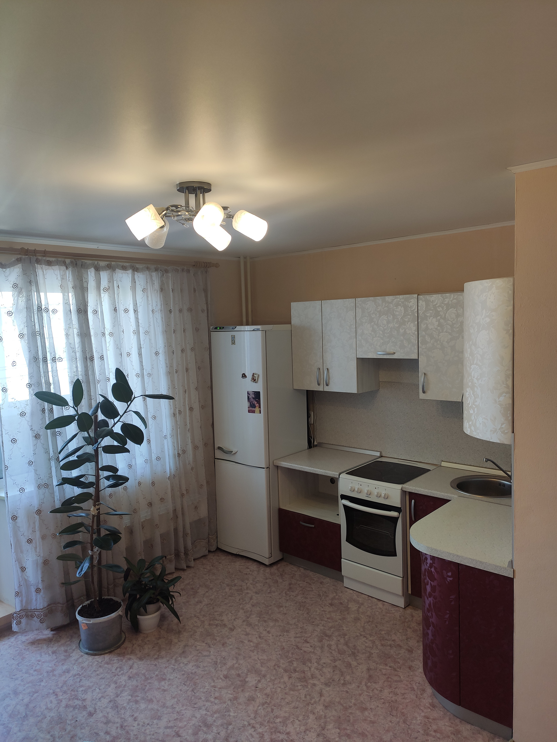 Мебель (диван, кухонный стол, стулья, кухонный гарнитур, большая очень вместительная гардеробная с зеркальными раздвижными дверьми в потолок) и бытовая техника (электрическая плита и холодильник) остаются покупателям.