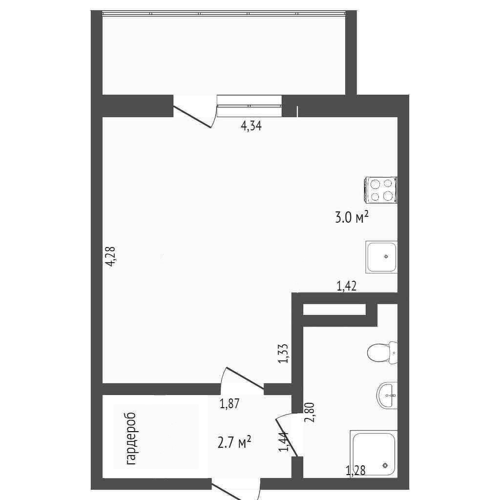 Общая площадь 23.8 м2