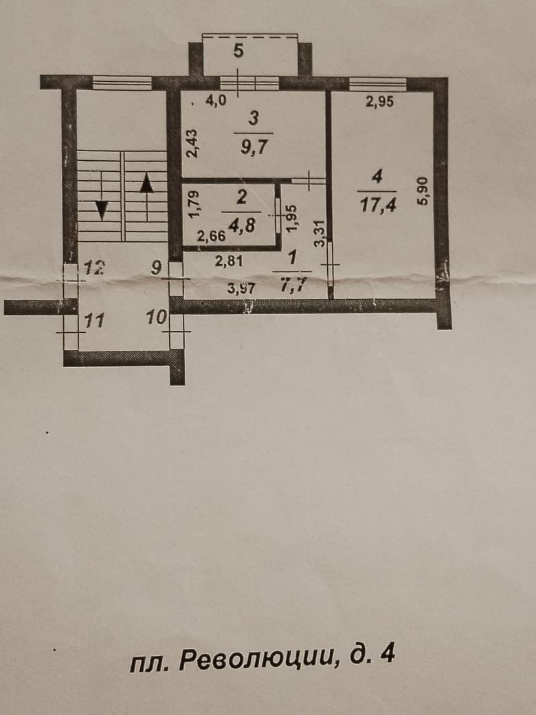 1-комнатная квартира, 40 м2, этаж 3 / 3, на продажу в Миассе, площадь Революции, 4