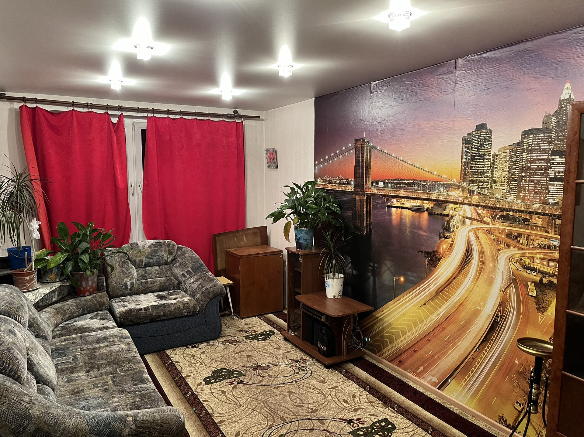 Квартира с косметическим ремонтом , во всех комнатах натяжные потолки , современные двери, евро окна. В ванной нагреватель на 50 литров на момент летнего отключения горячей воды. Если нужно из мебели остается гарнитур , плита , 2 дивана, все шкафы. В коридоре есть импровизированная гардеробная.