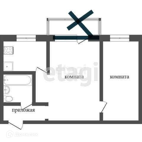 2-комнатная квартира, 42.4 м2, этаж 2 / 5, на продажу в Миассе, проспект Макеева, 30