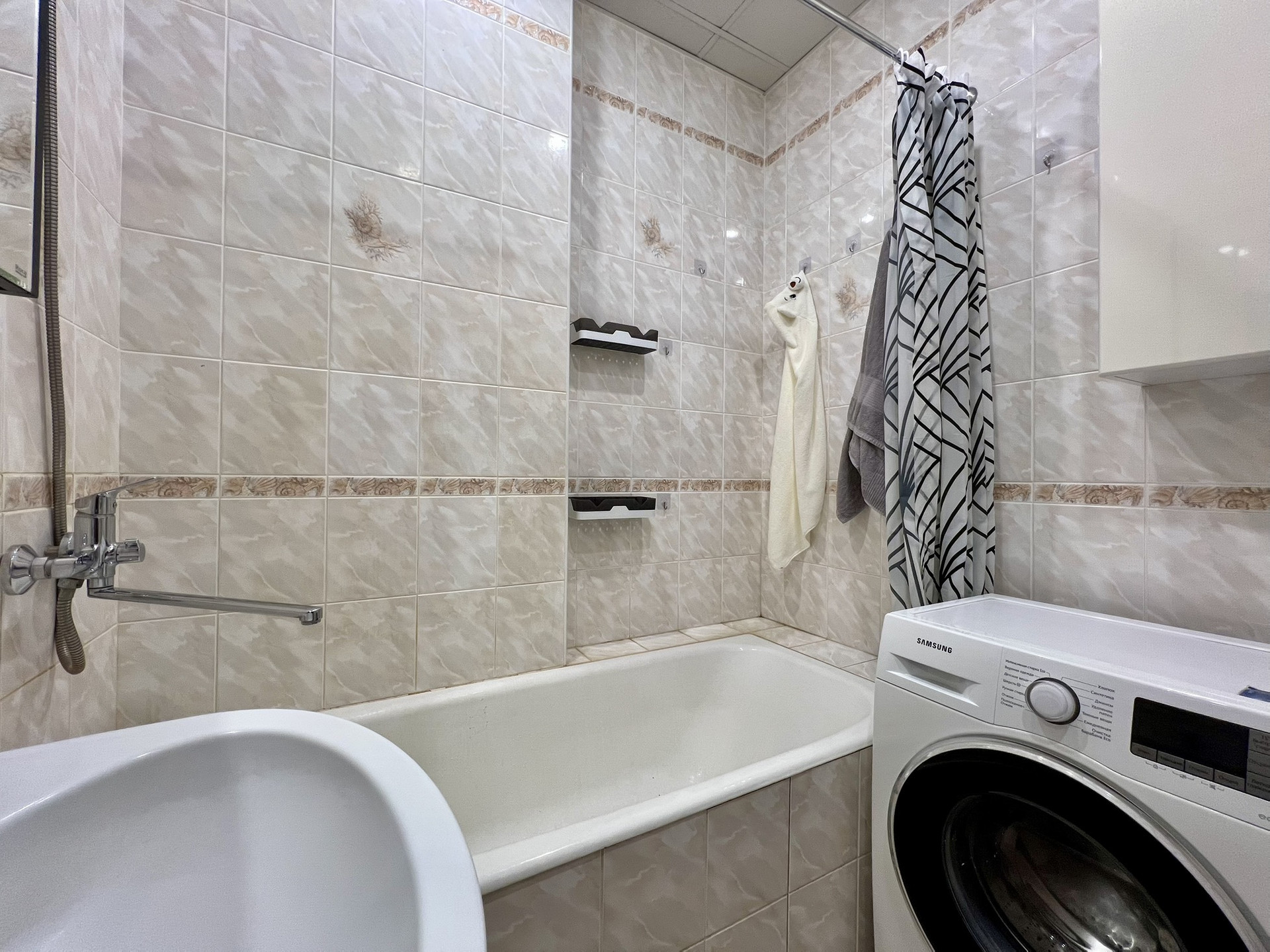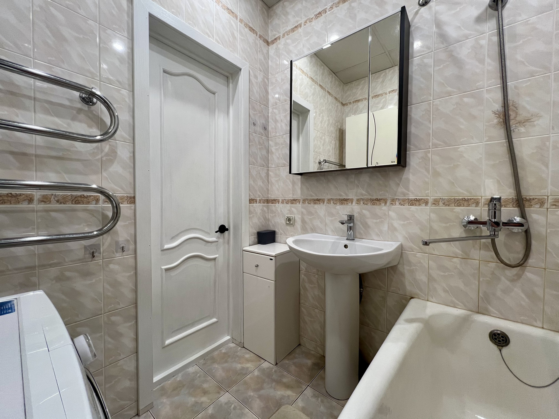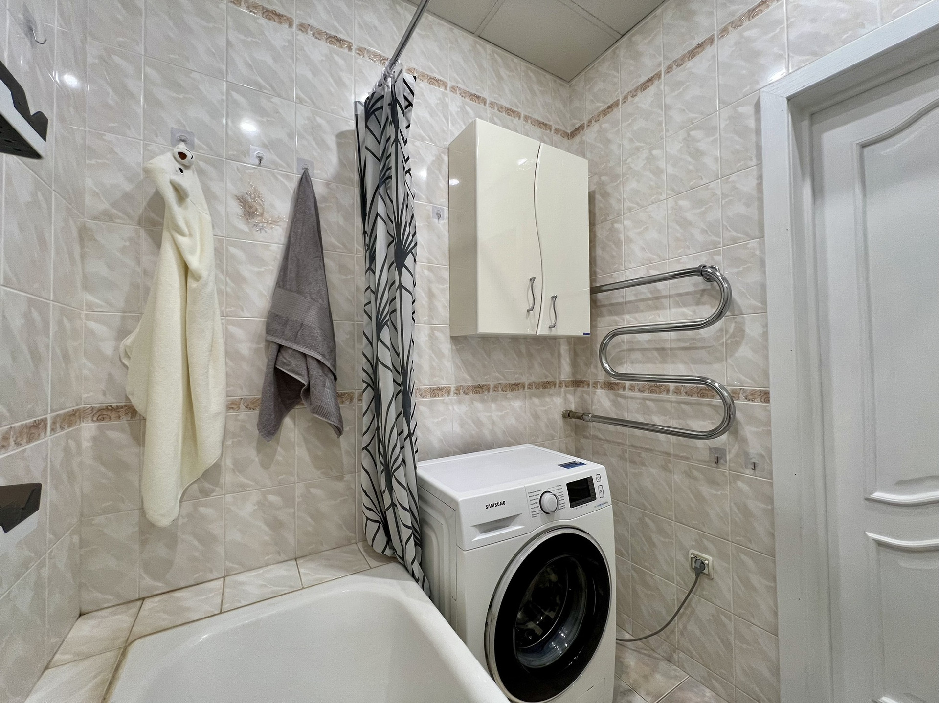 ✅ В ванной комнате тёплая стена, а также дополнительный полотенцесушитель-змеевик.