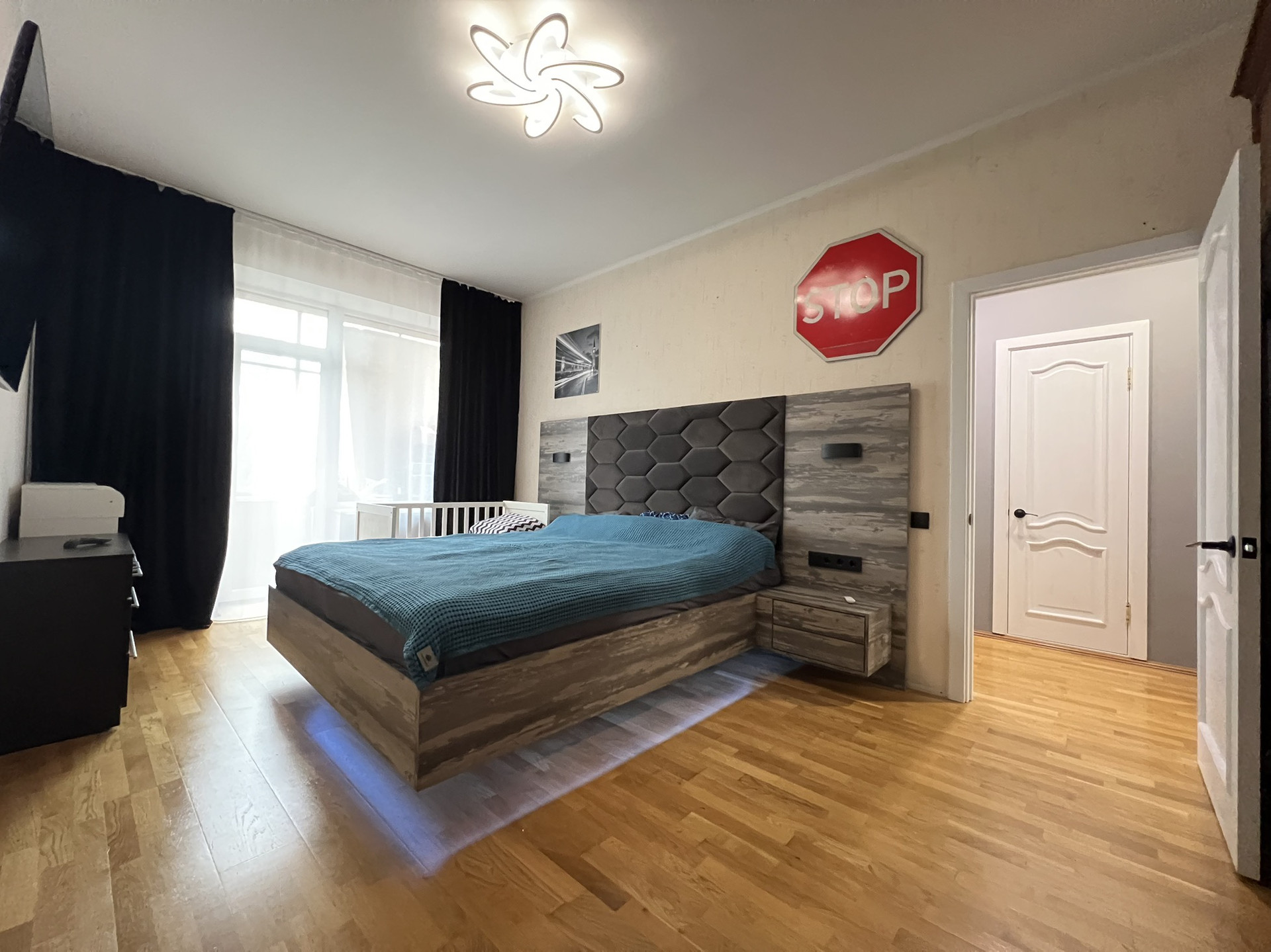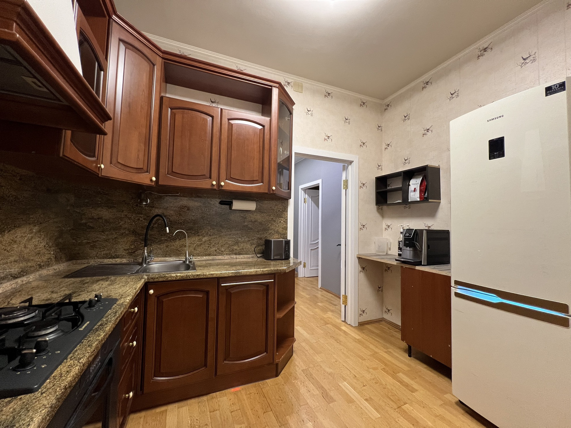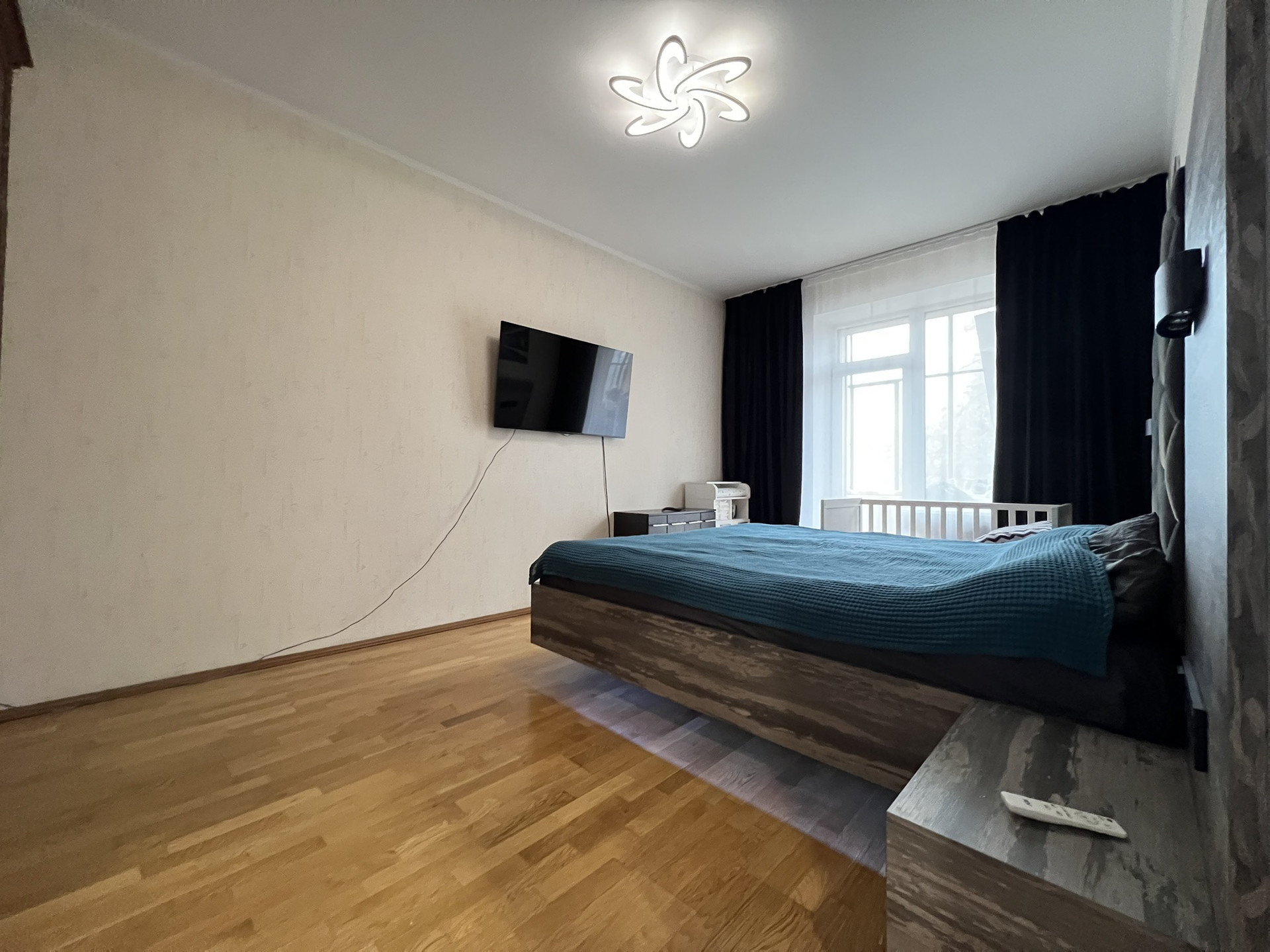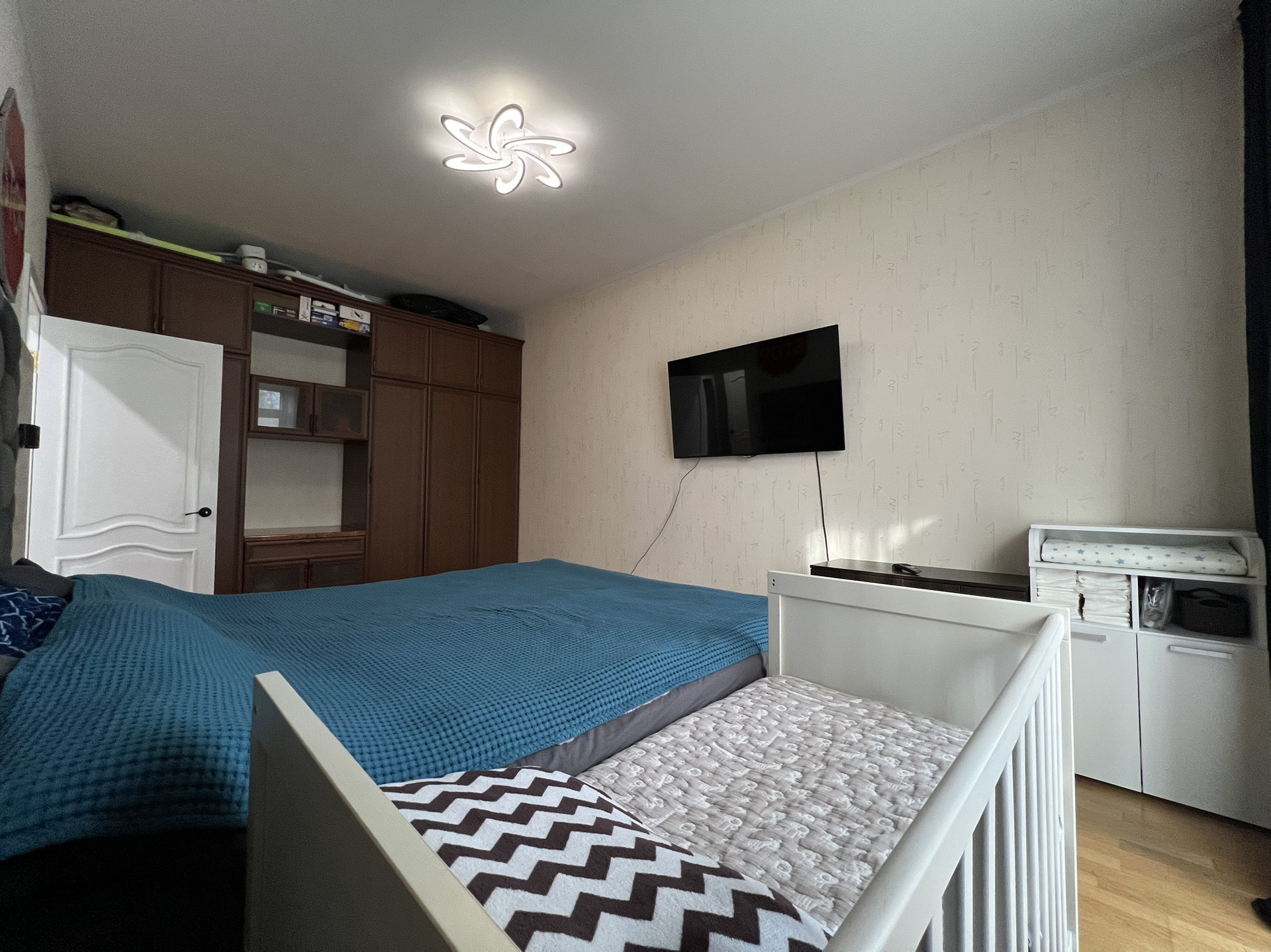 ✅ По всей квартире (кроме ванной комнаты и туалета) без порогов и границ уложена двухслойная паркетная доска, устойчивая к влаге и температурным изменением.
