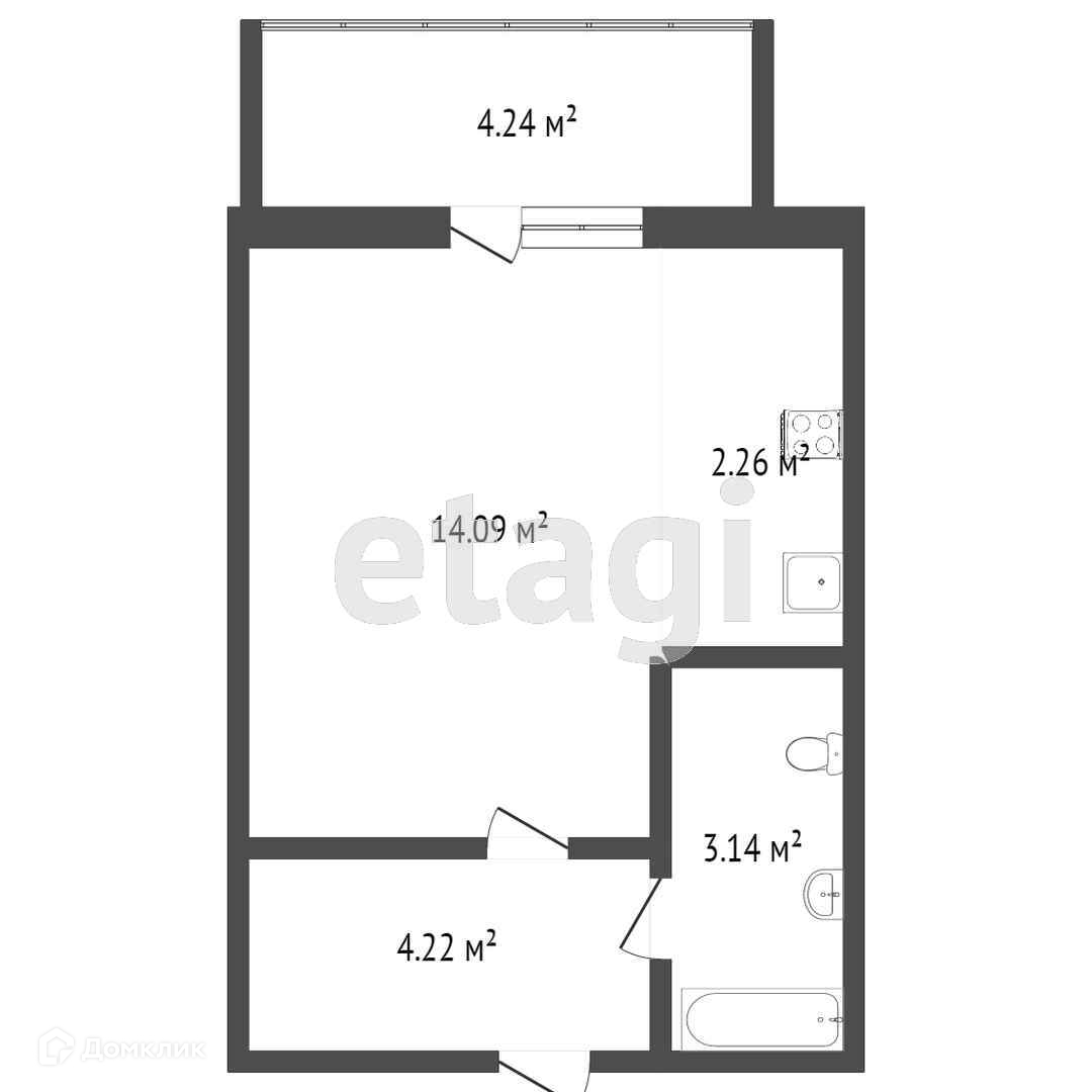 Общая площадь 24.4 м2