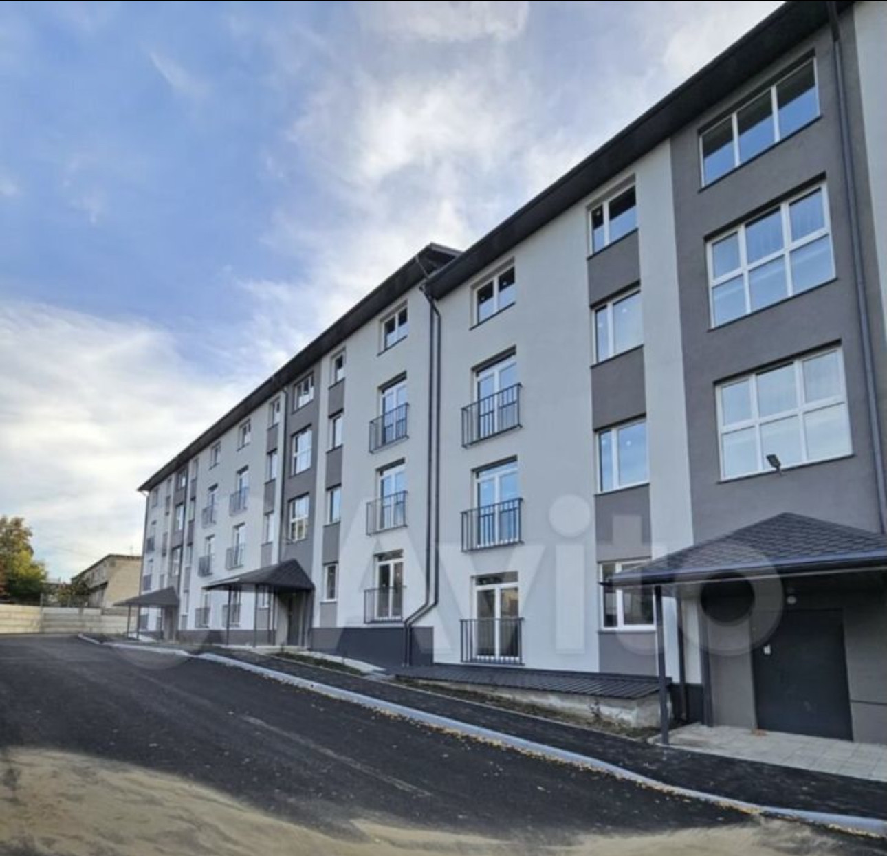 Удобное расположение дома. Большая парковка и детская площадка.