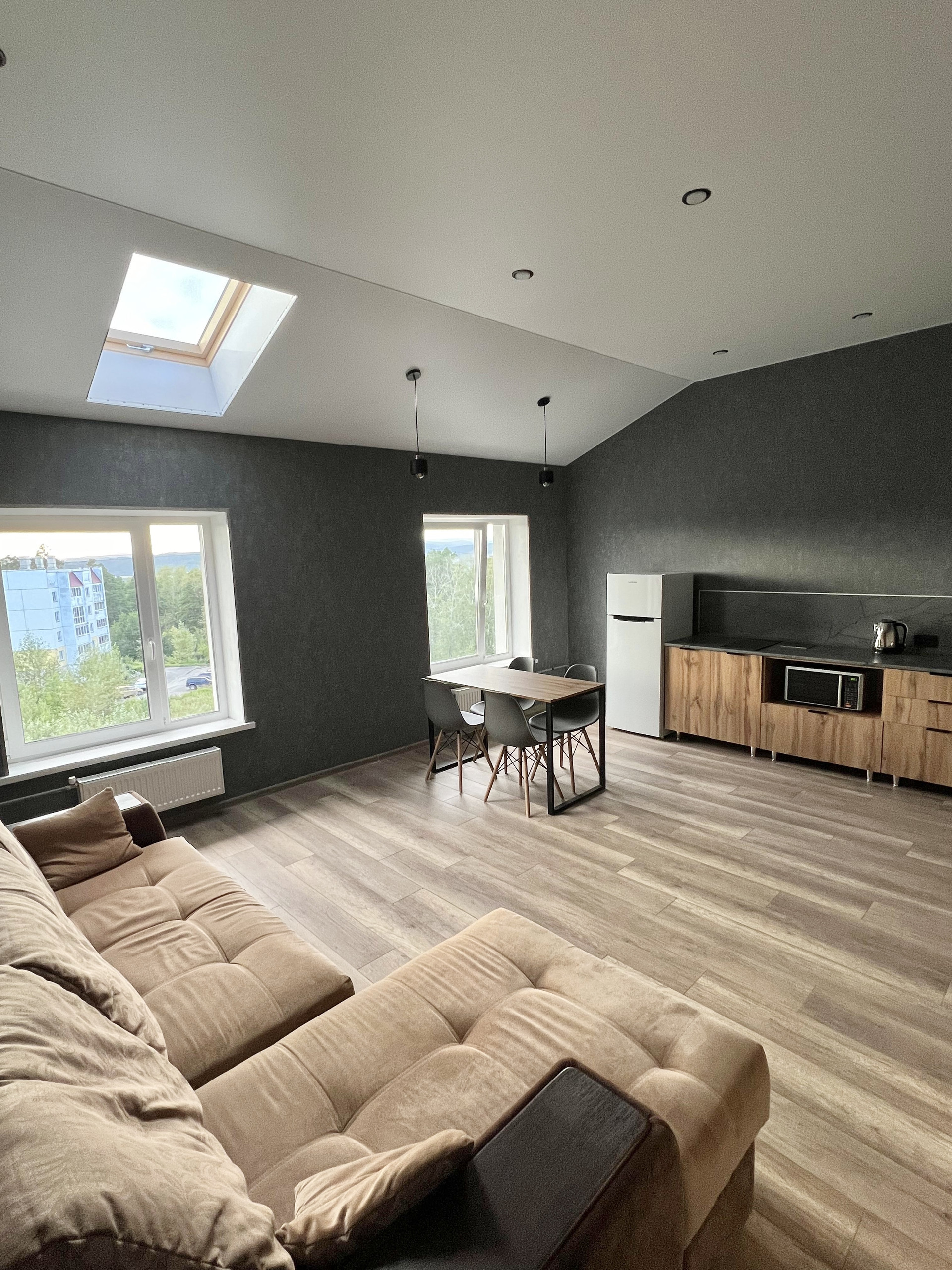 Мансардный этаж с дополнительными окнами. Шикарный вид на весь город.