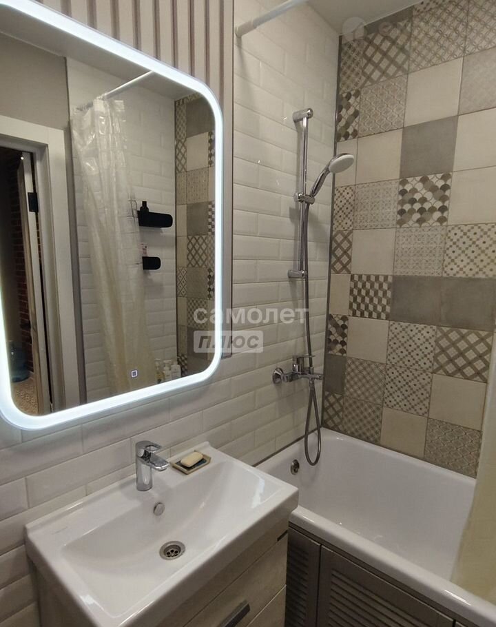 —  Ванная комната: зеркало с подсветкой, все элементы остаются, кафель;