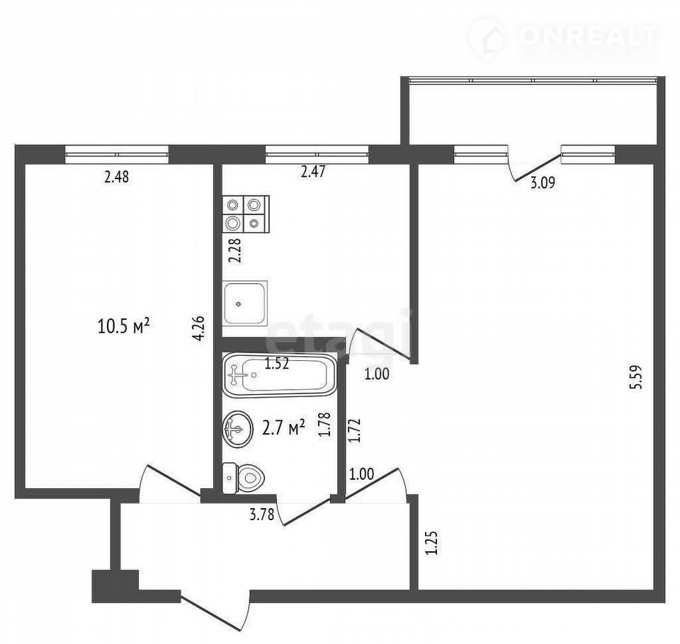 Балкон, лоджия 1 балкон