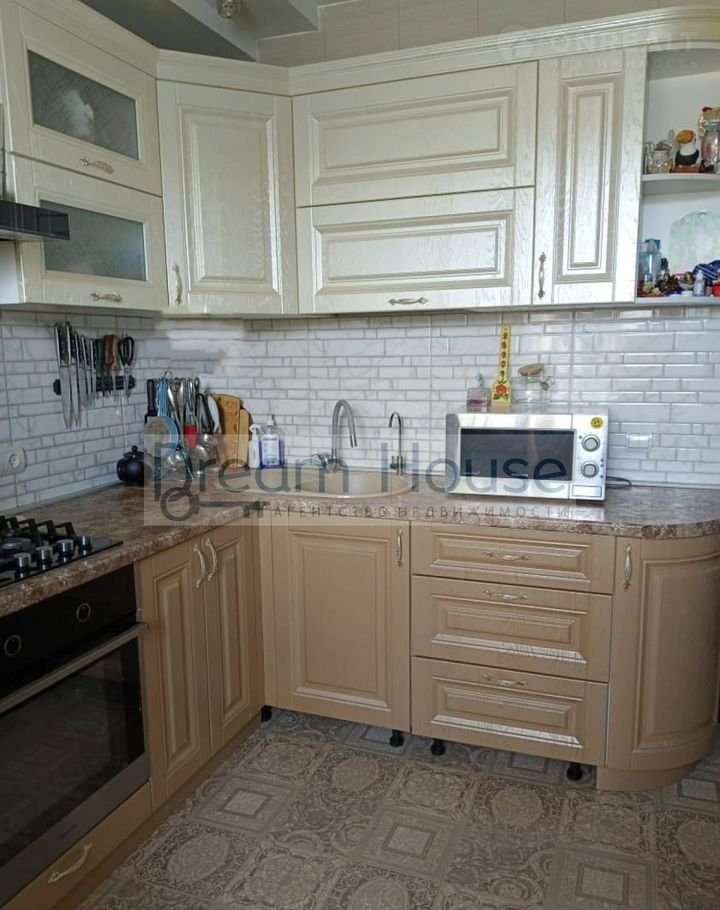 При продаже остается современный кухонный гарнитур и встроенный шкаф.