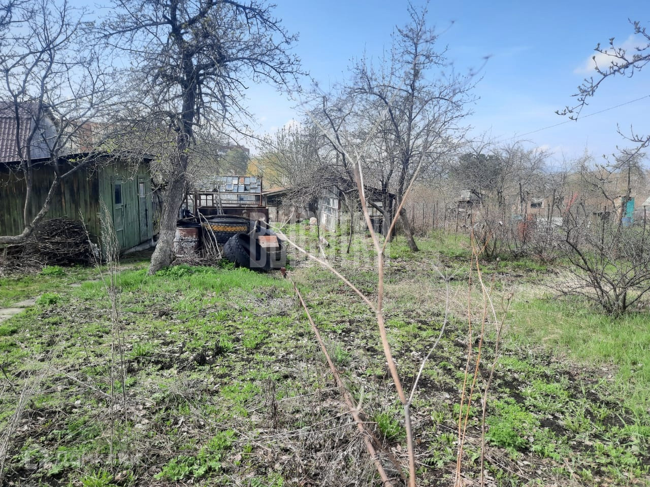 Арт. 64461526 Продаем замечательный земельный участок в к/с "Автомобиль" площадью 684 кв. м. На участке есть небольшая дачка (требует ремонта), большая теплица с металлическим каркасом, летняя веранда с помещением под инвентарь, бак под воду, много насаждений яблоки, груши, вишня, смородина, облепиха. Хорошее расположение участка,  пять минут от шлагбаума. Участок ровный широкий. К участку на машине не подьехать.Торг