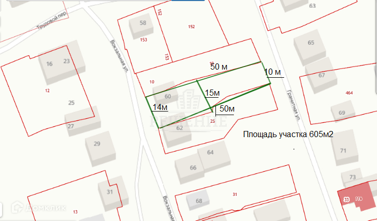 Отличные видовые характеристики! На участке плодовые деревья. Хорошие подъездные пути по пер. Трудовой.  Размеры участка 15м х 50м. Площадь 6 сот. Заезд на участок с ул. Вокзальная и с ул. Гранитная.