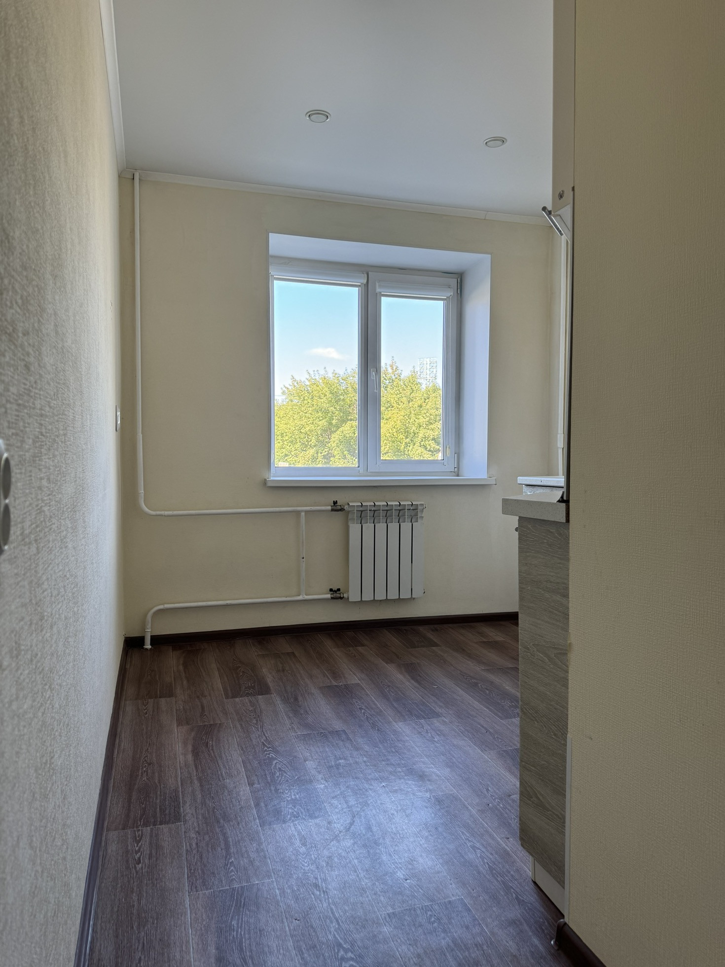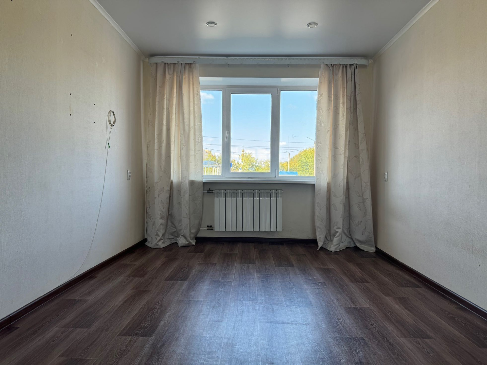 В квартире свежий косметический ремонт: на стенах обои, на полу линолиум, натяжные потолки. Установлены межкомнатные двери и сейфовая входная дверь, биметаллические радиаторы. Санузел совмещен, отделан кафелем. Заменена вся сантехника.
