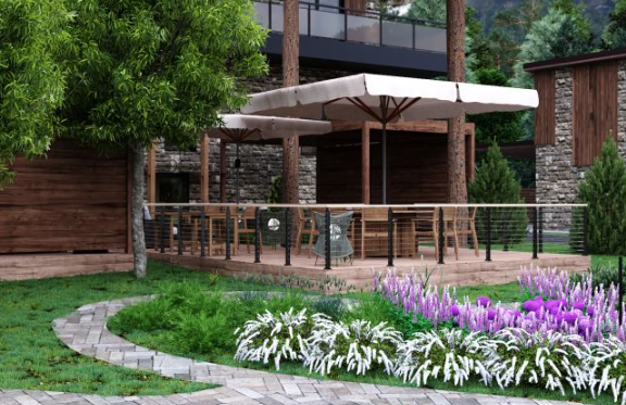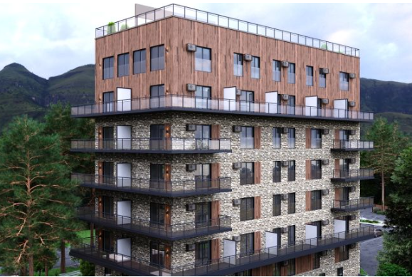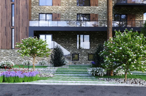 Главный 6-ти этажный корпус в центре курорта со SPA центром в цокольном этаже (бассейн-15*3 метра, русская баня, финская сауна, хаммам, джакузи, зона релакса), с большим пассажирским лифтом и ресепшн. Дизайнерское оформление площадей общего пользования. Апартаменты с террасами и без, площадью от 24 кв.м.