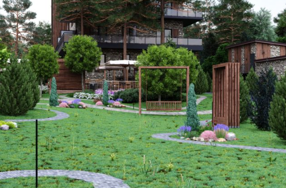 Главный 6-ти этажный корпус в центре курорта со SPA центром в цокольном этаже (бассейн-15*3 метра, русская баня, финская сауна, хаммам, джакузи, зона релакса), с большим пассажирским лифтом и ресепшн. Дизайнерское оформление площадей общего пользования. Апартаменты с террасами и без, площадью от 24 кв.м.