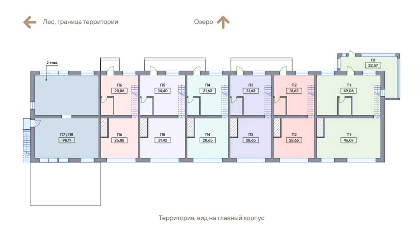 Двухэтажный корпус у озера 2 кв.2024 года.