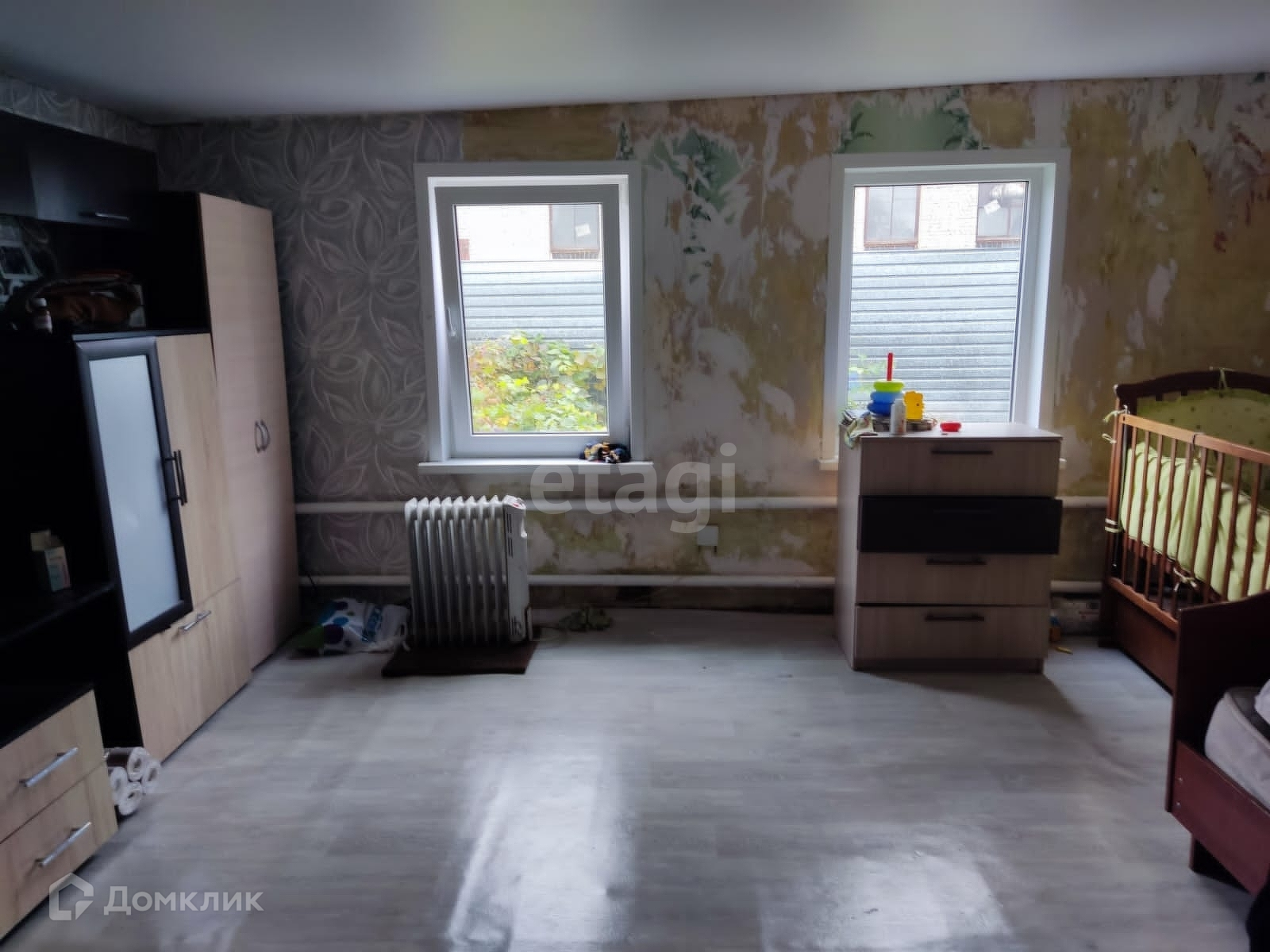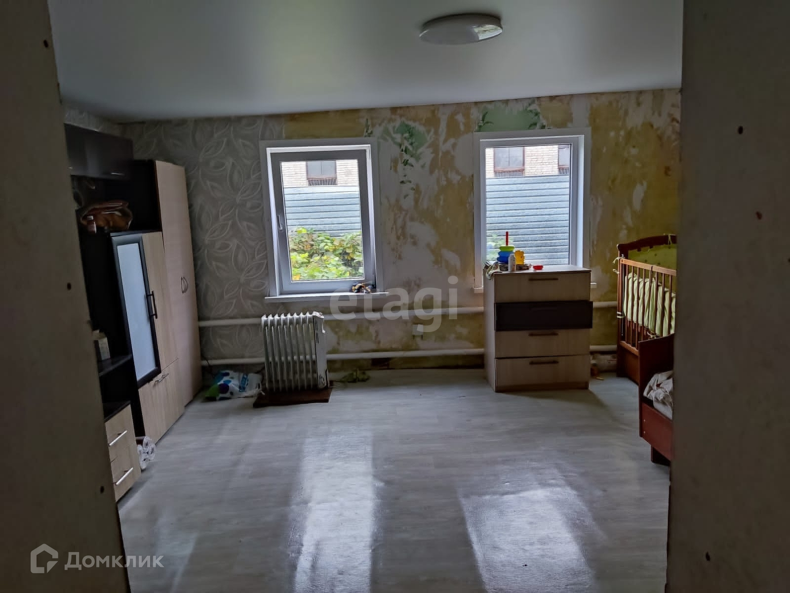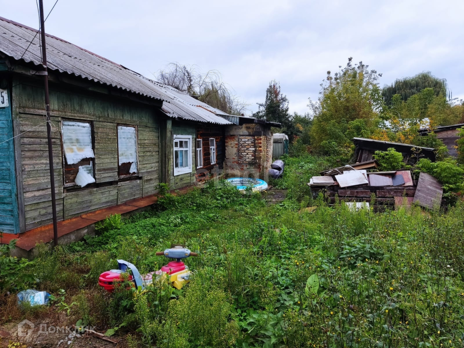 С частичными удобствами в доме, центральным отоплением. Частичным ремонтом.