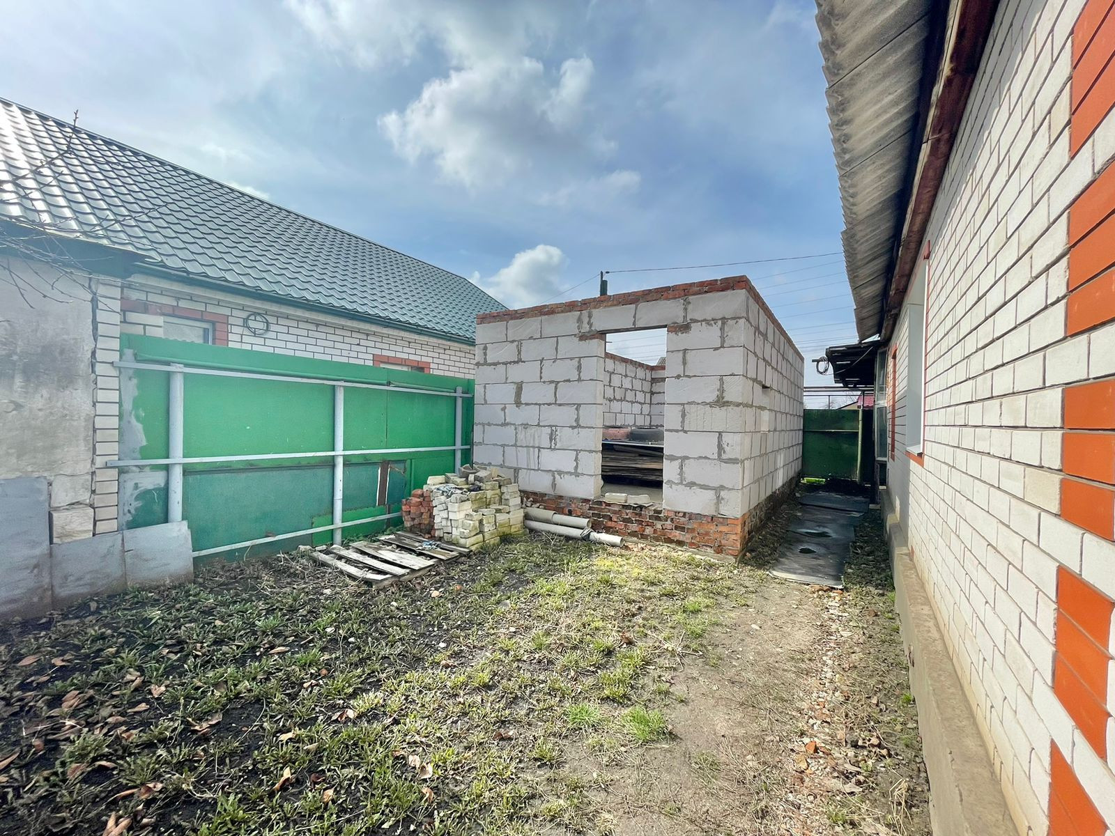 На земельном участке построен гараж общей площадью 6×4, высота под газель, материал стен- пеноблок, залит бетонный пол, планировался строиться банный комплекс с бассейном (фундамент залит). На территории имеется летняя времянка - (при желании можно использовать как летнюю кухню). Придомовая территория огорожена забором. Круглогодичный подъезд к участку (асфальт).