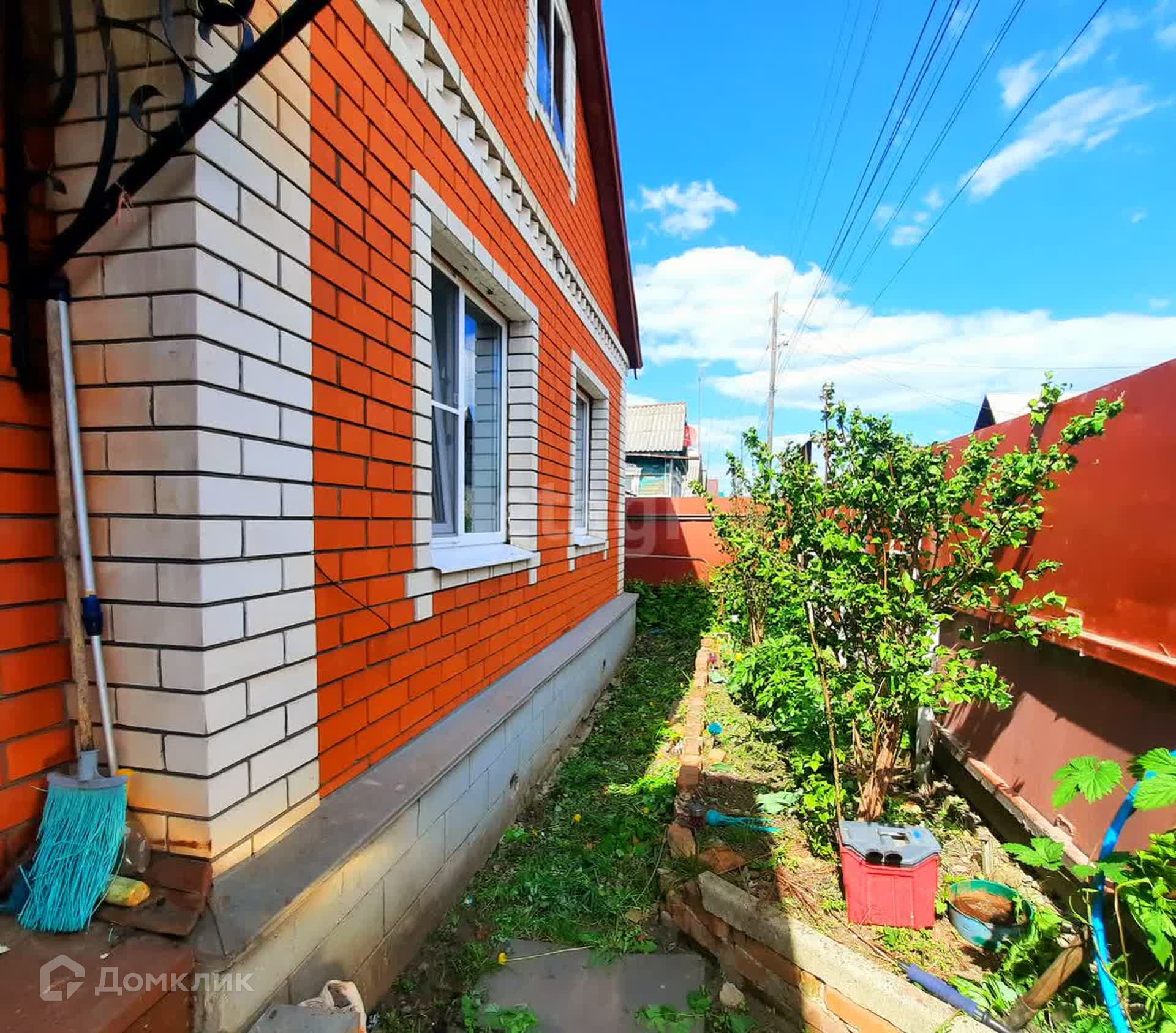 Построен из бруса и обложен кирпичом, крыша в хорошем состоянии, огражден металлическим забором. с улицы есть заезд в гараж.