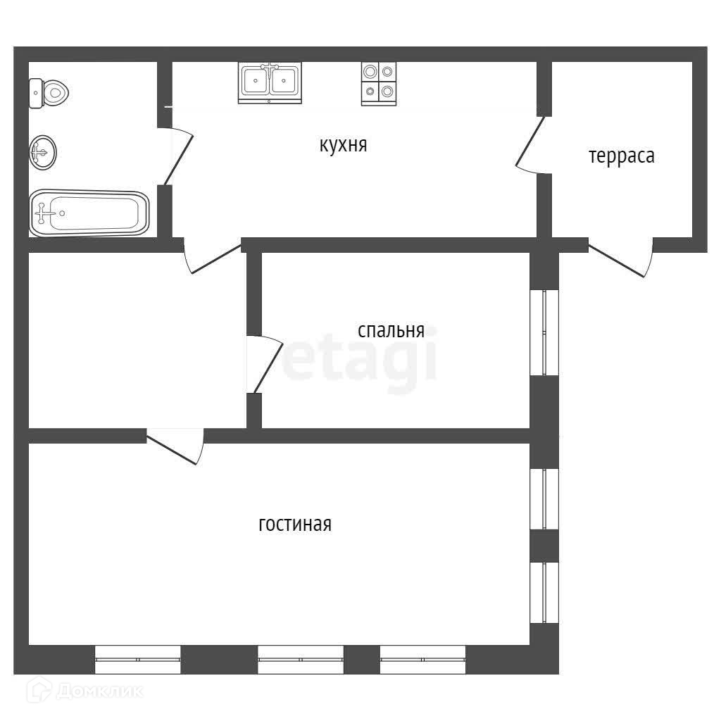 Общая площадь 41.5 м2