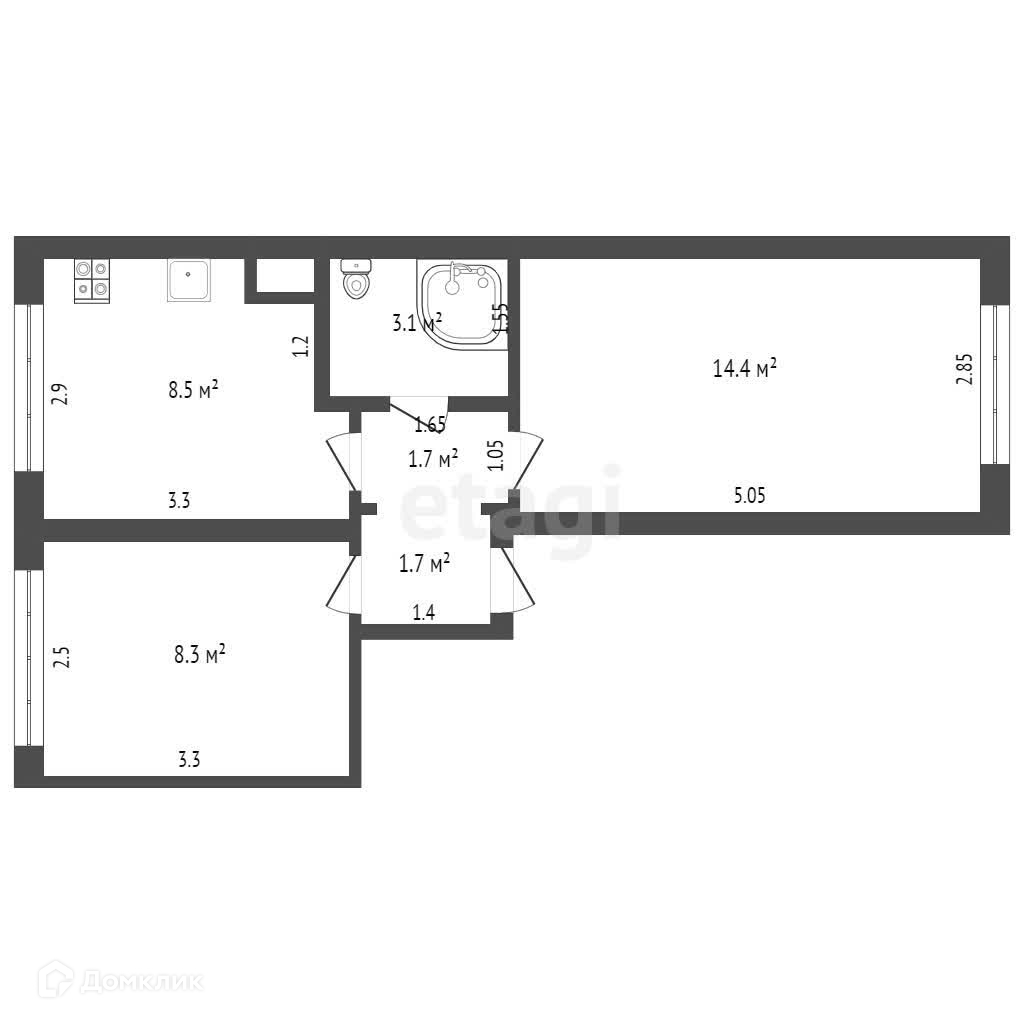 Общая площадь 37.7 м2