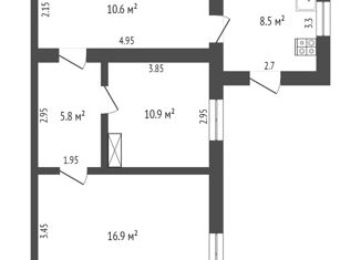 Общая площадь: 58.9 м2