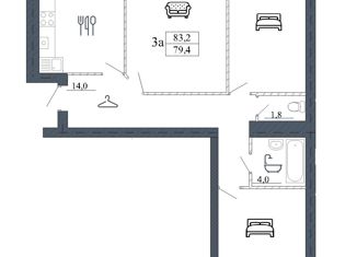 Общая площадь: 83.2 м2