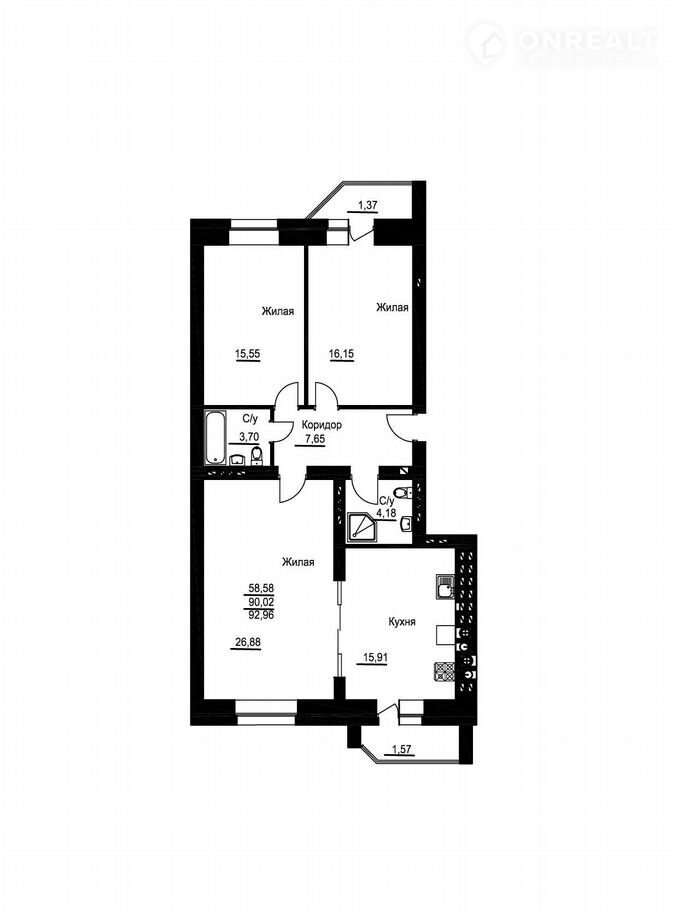 Общая площадь 93 м2