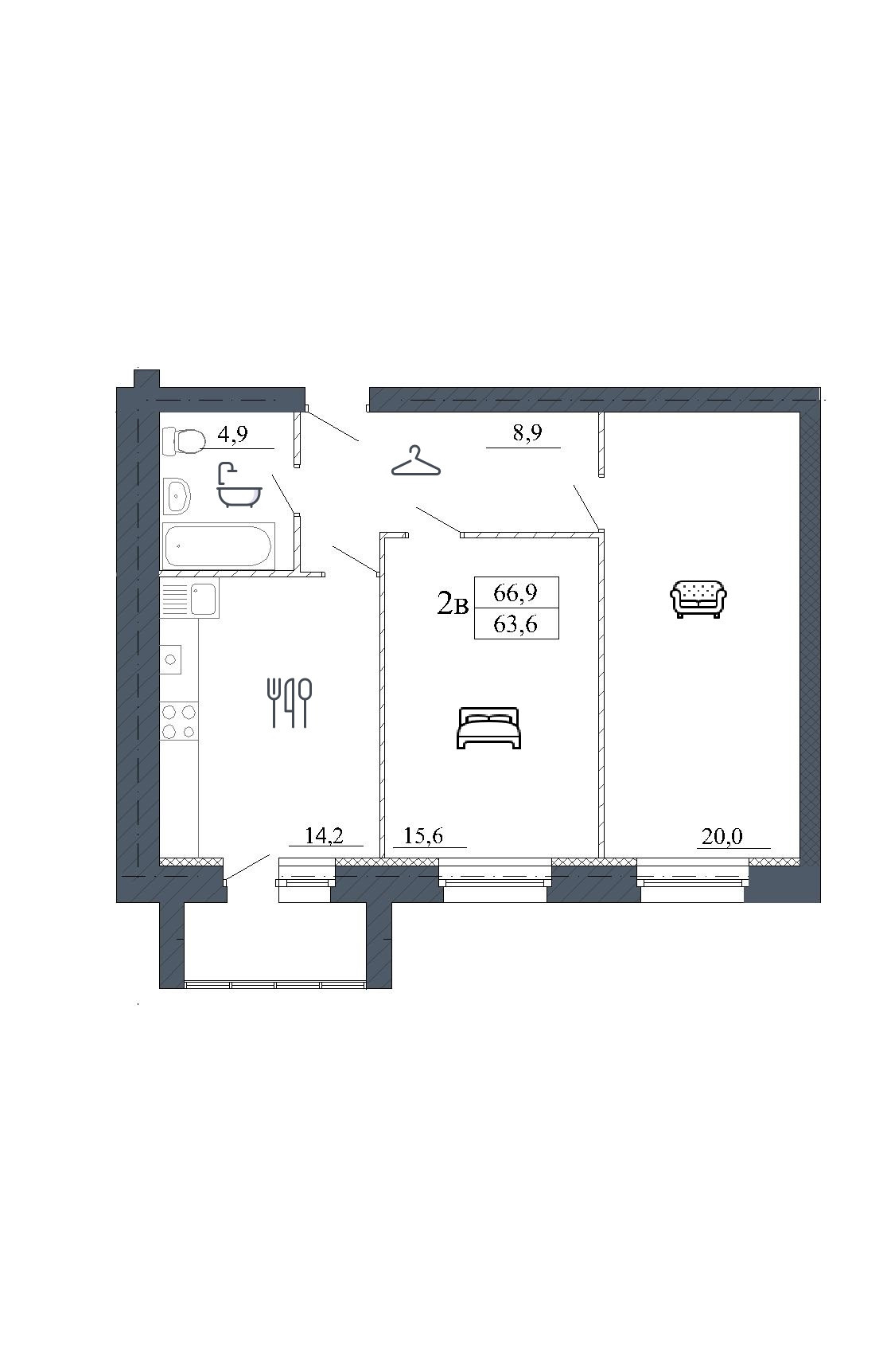 Общая площадь 66.9 м2