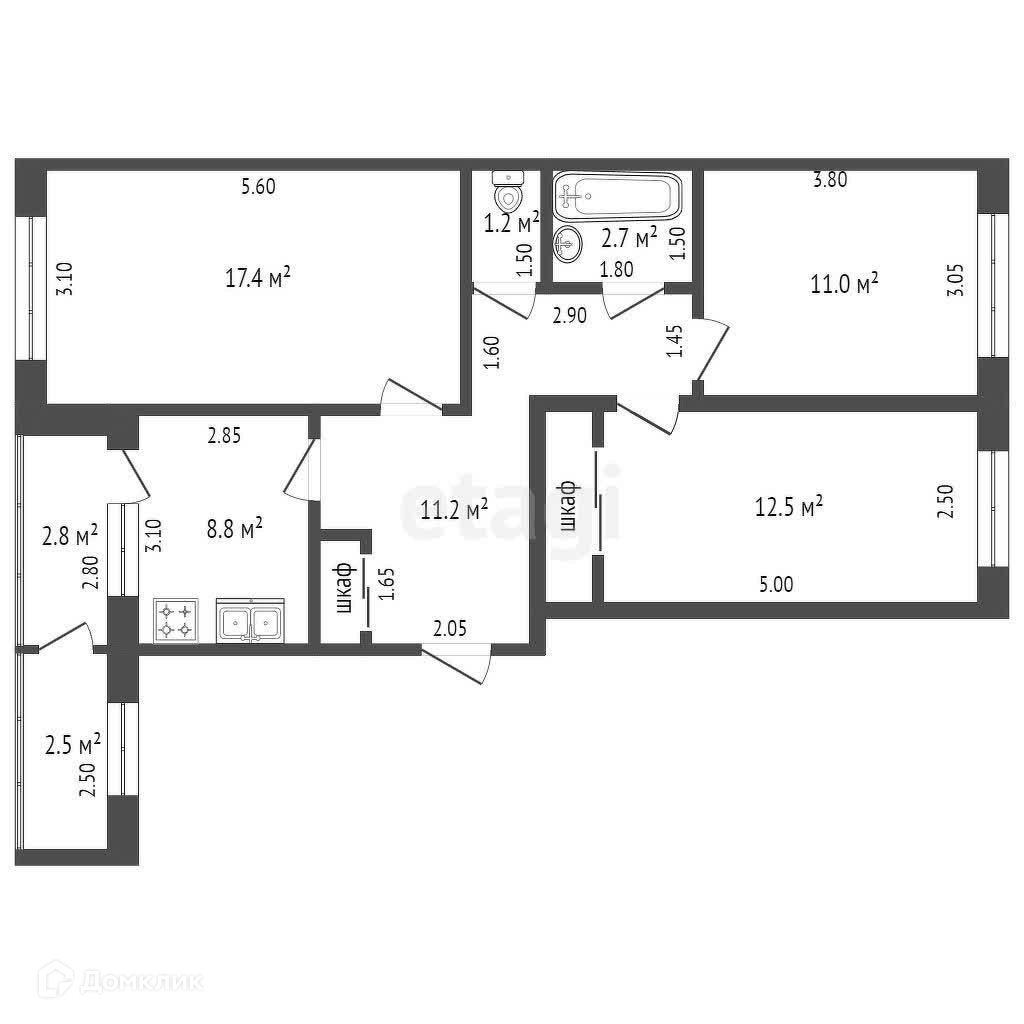 Общая площадь 67.3 м2