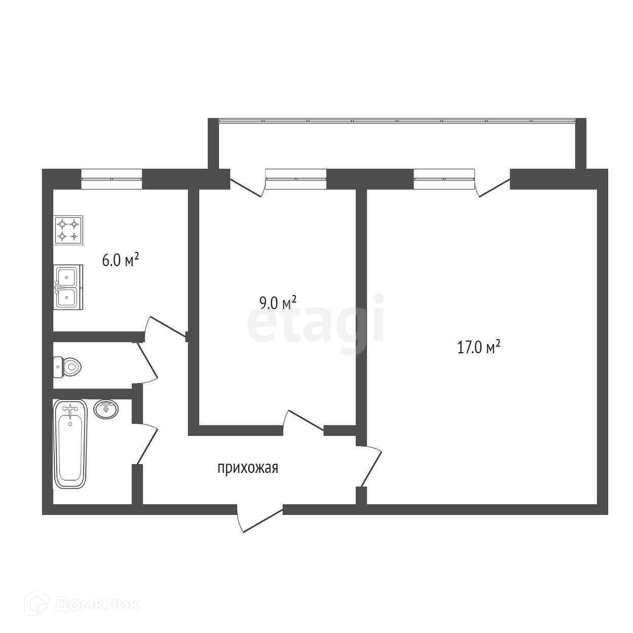 Балкон, лоджия 1 балкон