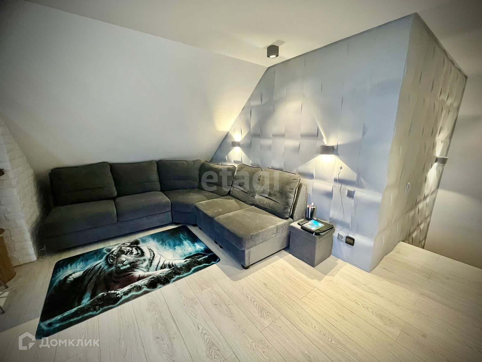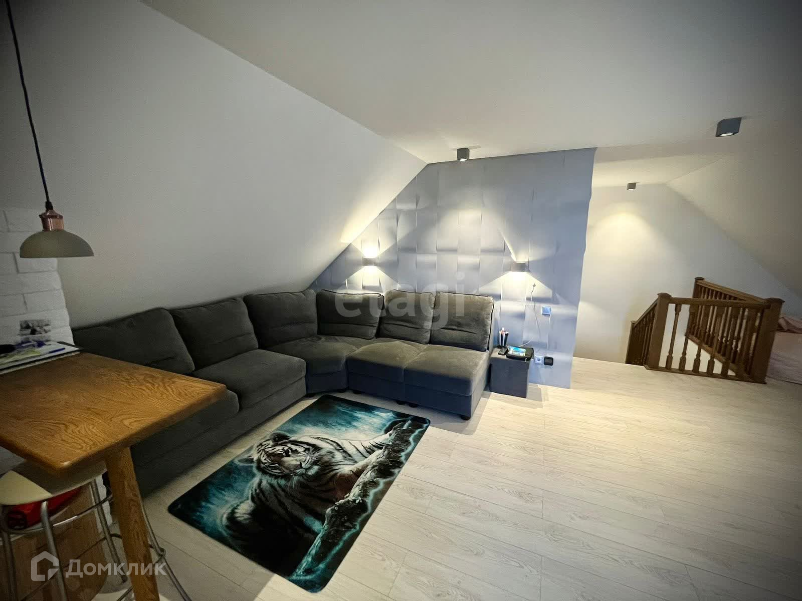 ● Помимо внушительной жилой площади, состоящей из вместительной и светлой гостиной комнаты на 1-м уровне; большой спальни, совмещённой с гардеробной и разделённой коридором с детской комнатой на 2-м уровне; а так же широкой и уютнейшей комнаты на мансарде здания — в доме так же имеются: просторная кухня 20 м2, два санузла, два 9-ти метровых, панорамных балкона и небольшое помещение для сушки и глажки белья.