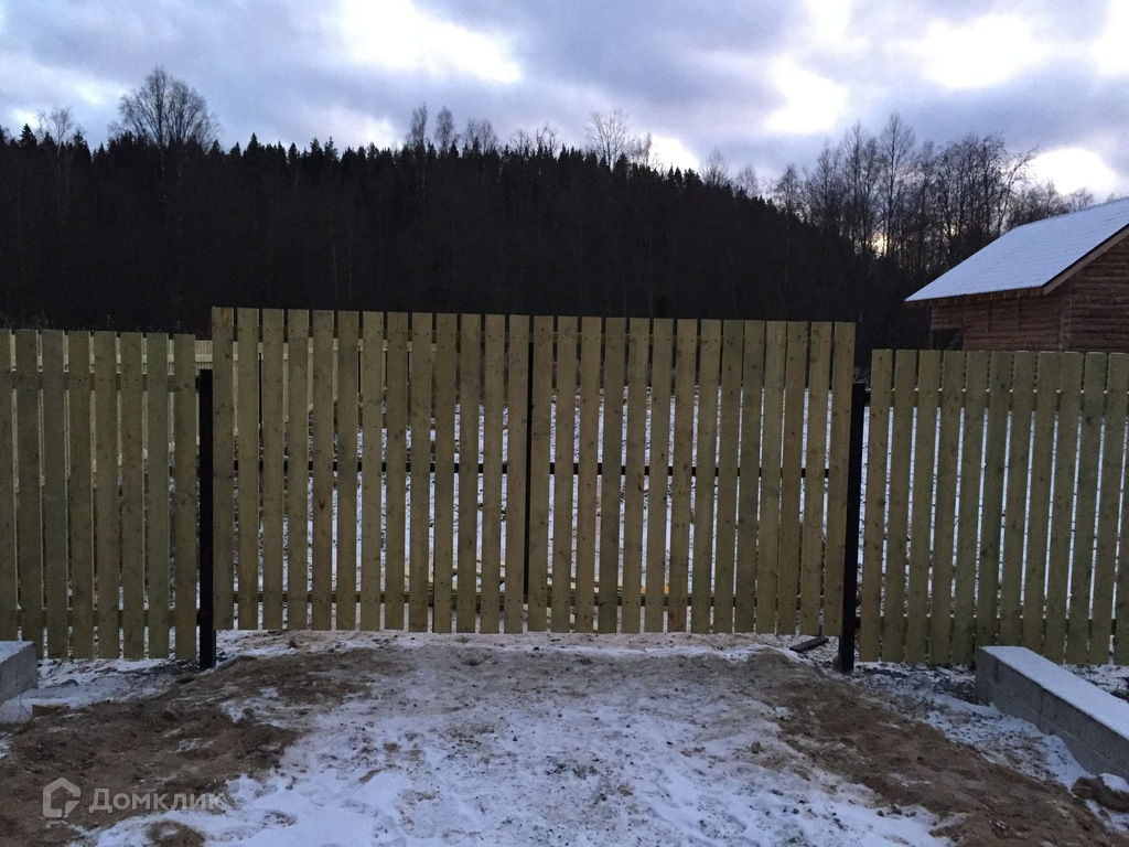 Участок ровный, обнесен деревянным забором с воротами для въезда машин. Вокруг участка мелиорационная канава. Въезд через канаву забетонирован, проложена труба.