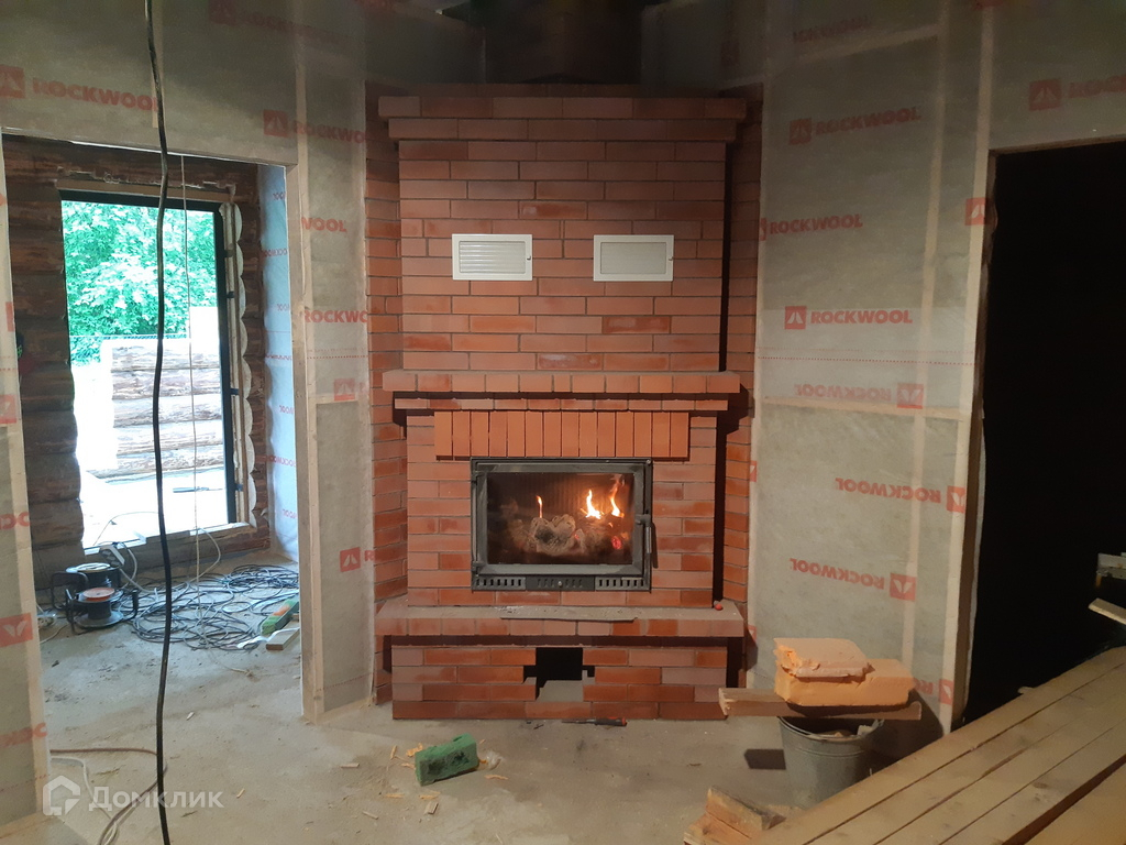 камин с системой обогрева первого и второго этажей.