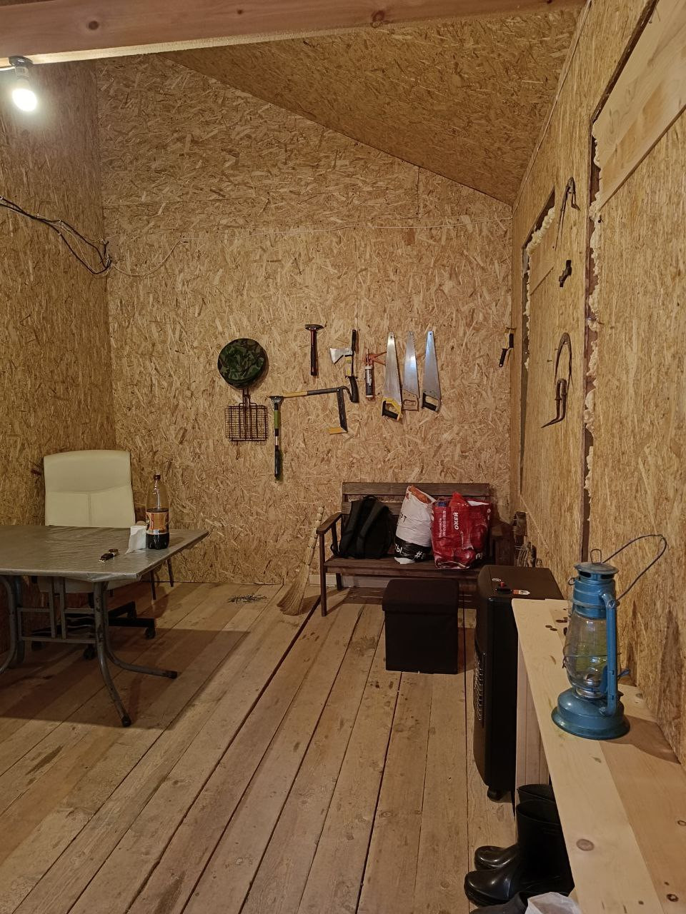 На участке есть 2 постройки: хоз. блок 18м2 и дом 47,7м2  с проведенным электричеством.