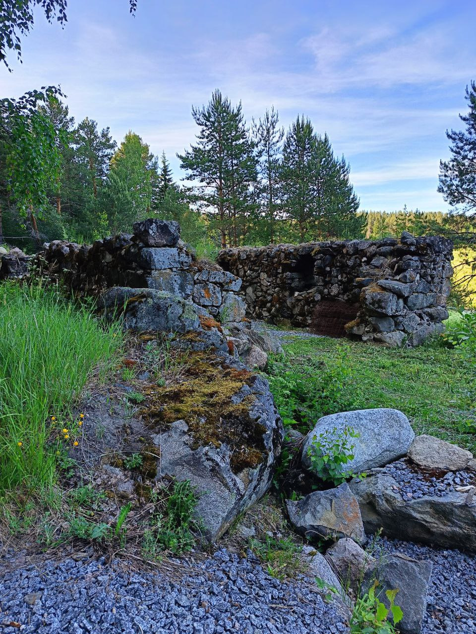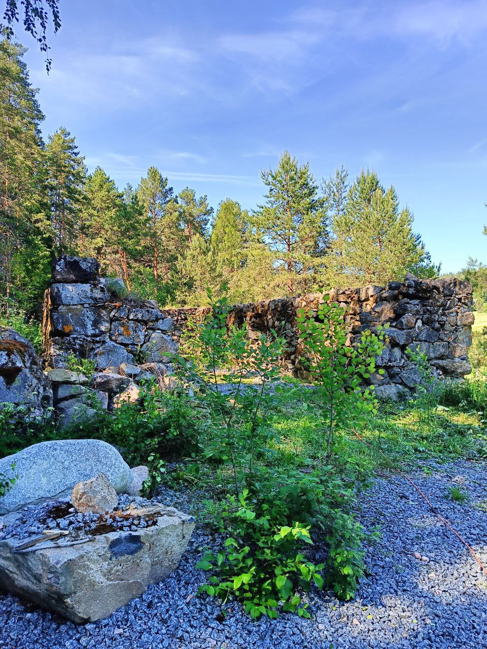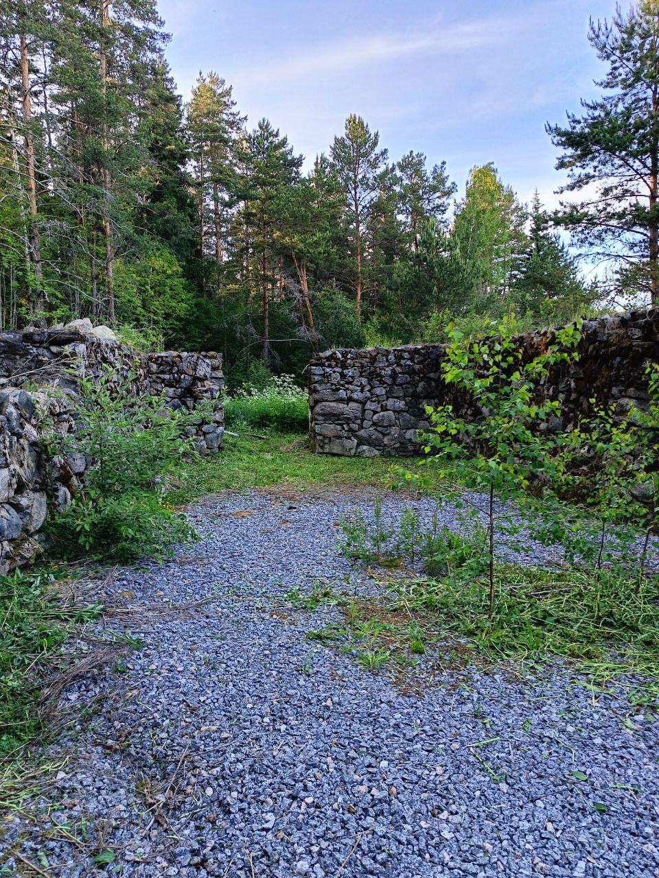 Кроме того, на участке есть старинные развалины 1851 года постройки, здесь ранее была финская конюшня. Эта постройка планировалась под встраиваемый дом внутри этих стен 18м*9м (фото примера в конце).